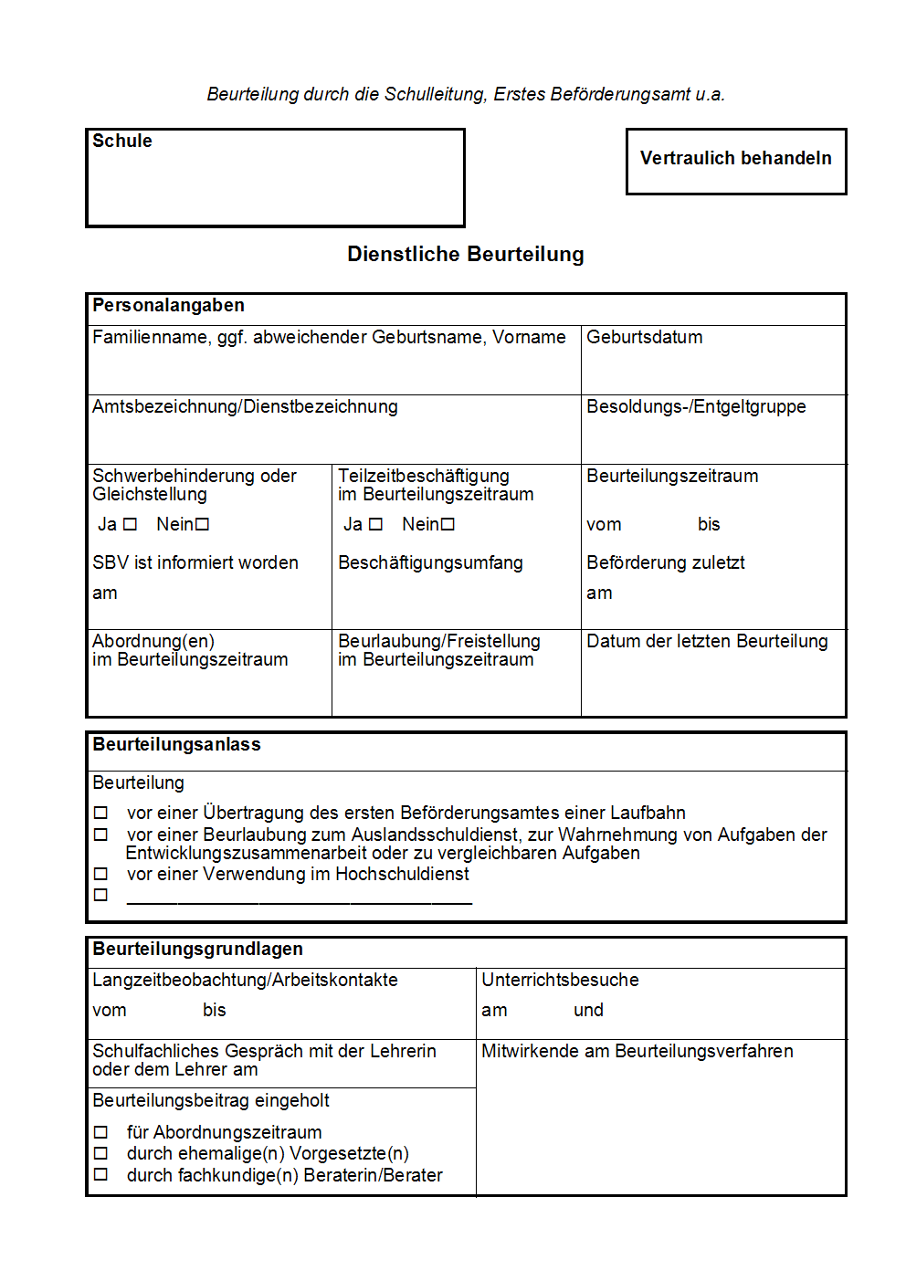 Gemeinsame richtlinien aller ministerien und des rh über die d b. Dienstliche beurteilung anlage 1 regelmäßige beurteilung nr. 6 anlage 4 muster für die probezeitbeurteilung abschnitt 3 nr. Diese aus dem prinzip der bestenauslese art.