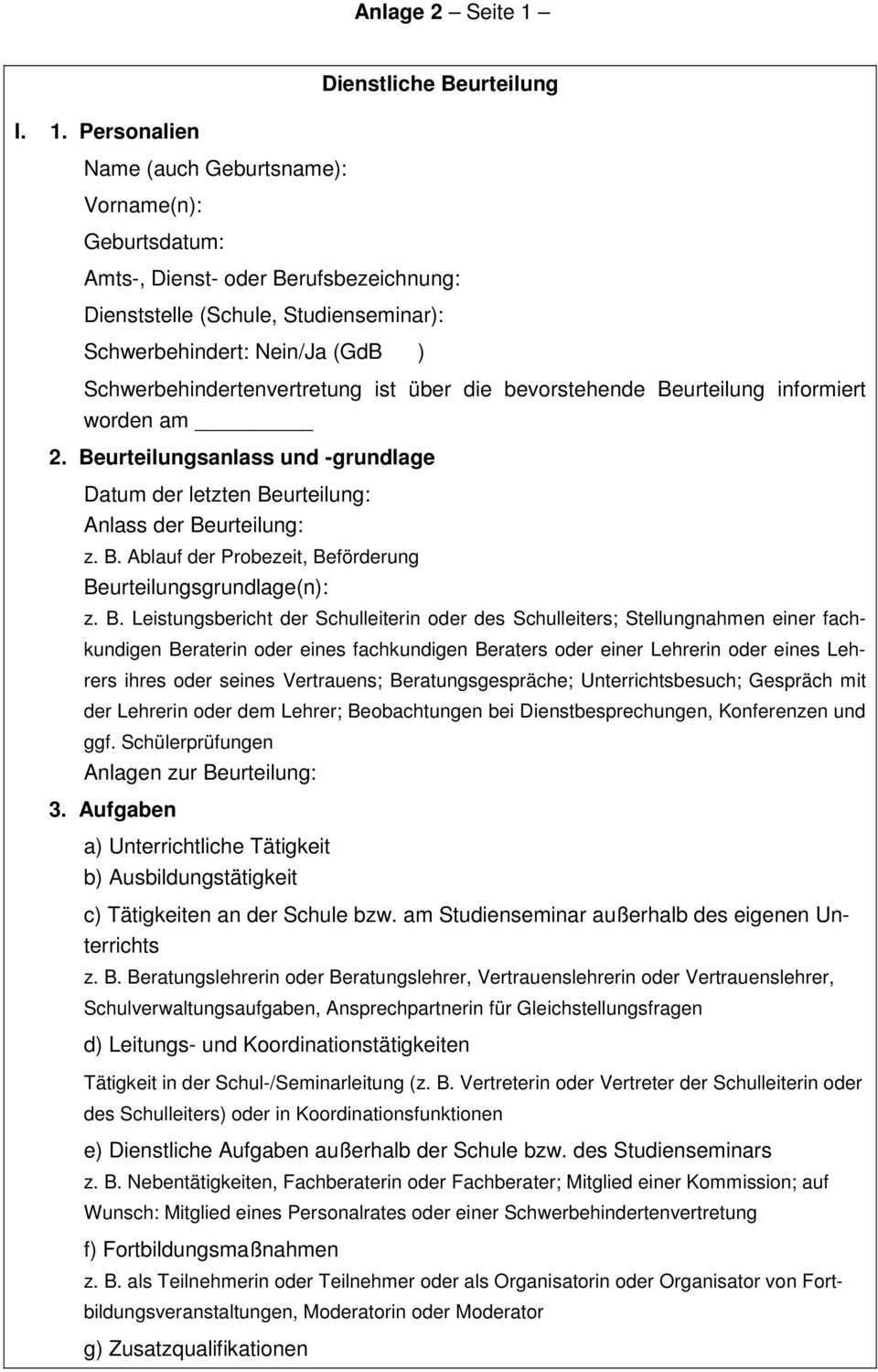 2 sgb ix bei denen die schwerbehindertenvertretung zu hören wäre. 2 lbg wie folgt zu verfahren. Beurteilung aus besonderem anlass nr.