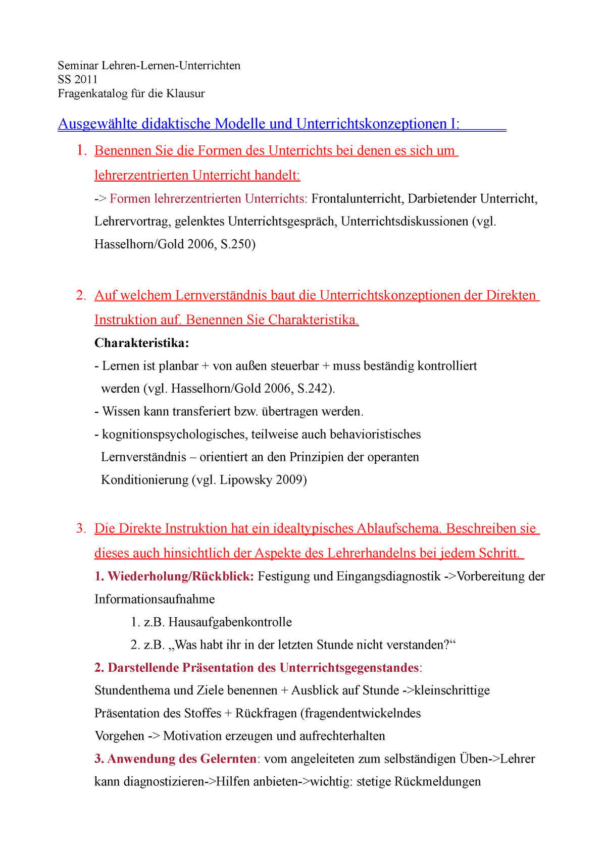 Aebli schon 1950 in seiner doktorarbeit bei j. Eine methode die fälschlicherweise mit dem zu recht kritisierten frontal oder paukunterricht verwechselt wird. Direkte instruktion ist nicht mit einem lehrerzentrierten oder gar fragend ent wickelnden frontalunterricht gleichzu setzen. Bei diesem modernen unterricht bemüht sich der lehrer an die vorkenntnisse der schüler anzuknüpfen.