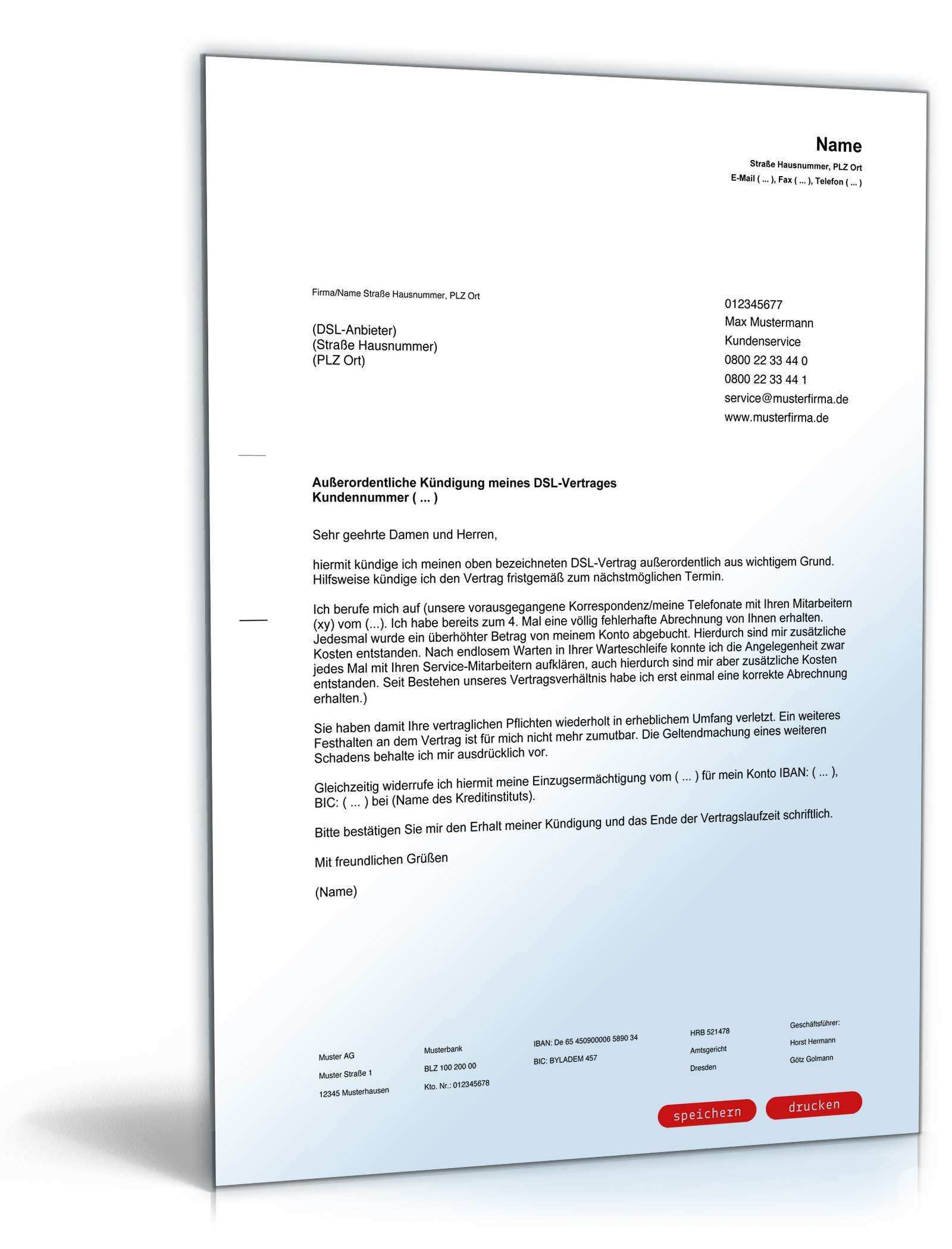 Das hilft ihnen ein wirksames kündigungsschreiben zu erstellen und spart zeit. Dsl anschlüsse gmbh musterstraße 2 30159 hannover. Mit dem ausfüllbaren formular erhältst du ein fertiges dsl kündigungsschreiben als pdf oder word zum ausdrucken. In diesem beitrag können sie muster kündigungsschreiben dsl einsehen und als pdf oder word datei herunterladen.
