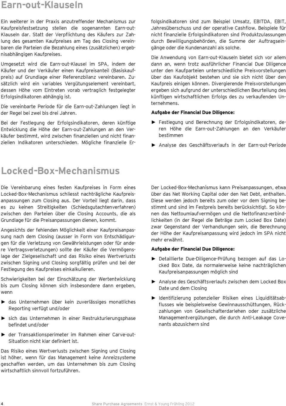 Zielbetrag erfolgsmessgröße und stichtage legen käufer und verkäufer gemeinsam fest. The earn out agreement should stipulate that the seller may not participate in the business after the transition period. Zahlungen aufgrund der earn out klausel seien so lange erfolgsneutral zu verrechnen bis der passivposten gegen den verrechnet wurde aufgebraucht ist. Muster einer earn out klausel der käufer zahlt an den verkäufer einen betrag von bis zu x eur wenn und soweit das durchschnittliche ebitda der gesellschaft in den geschäftsjahren 01 02 und 03 über y eur liegt.