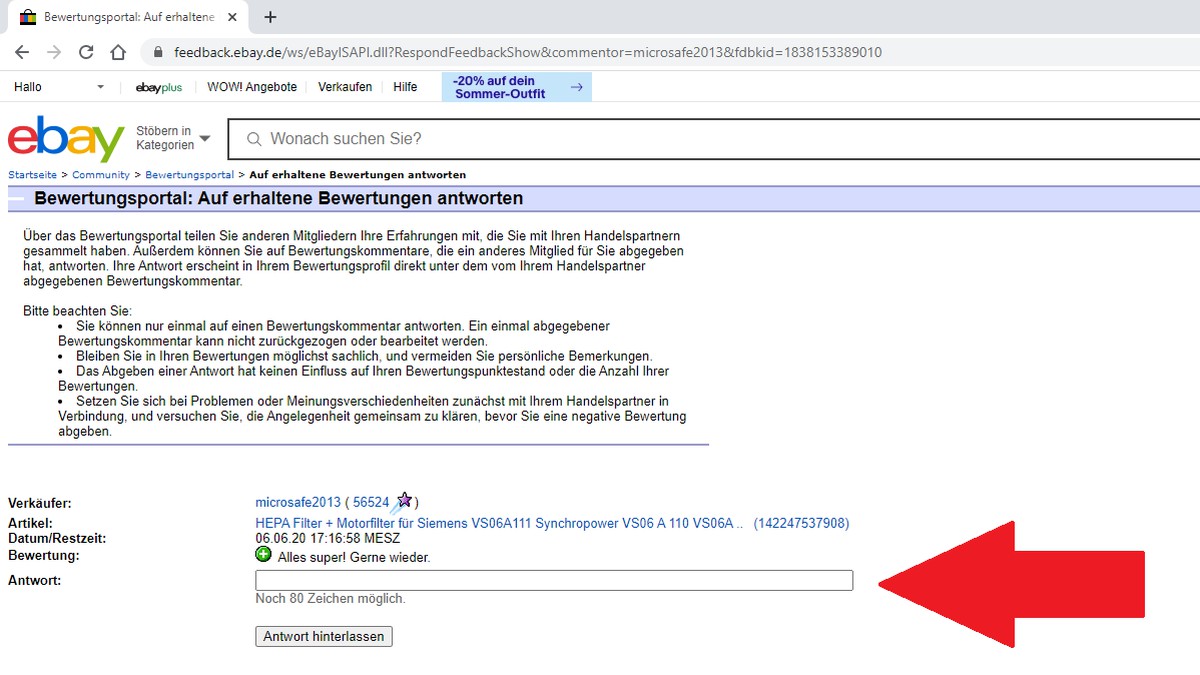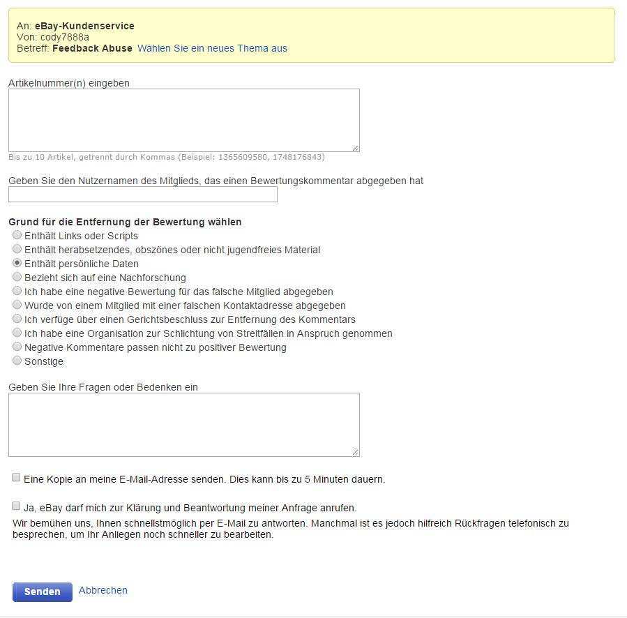 Viele ebay mitglieder schauen nach den bewertungen um zu sehen mit wem sie es zu tun haben. Vorlagen und beispiel eine ebay bewertung ist in der regel schnell verfasst da ihr dazu keine komplizierten texte verfassen müsst. Negative oder neutrale bewertung ändern die sie für einen verkäufer abgegeben haben verkäufer bitten die überarbeitung der bewertung zu beantragen. Ebay um entfernung einer bewertung wegen eines verstoßes gegen die bewertungsgrundsätze bitten bewertung an ebay melden.