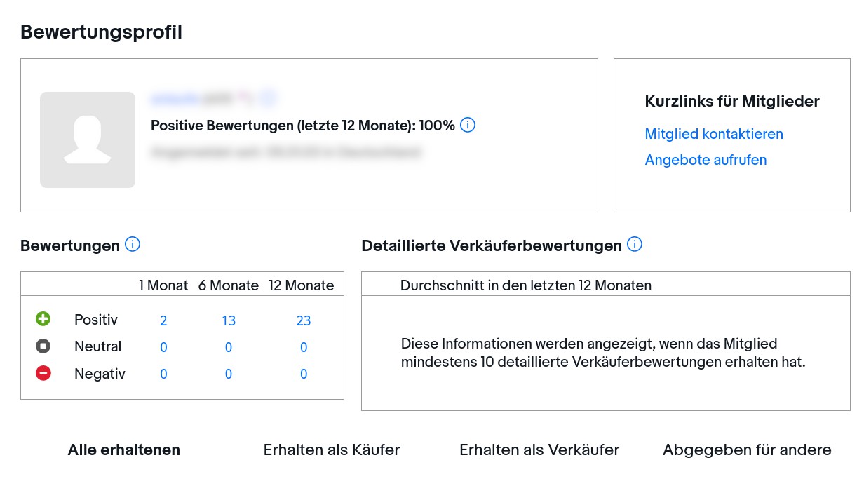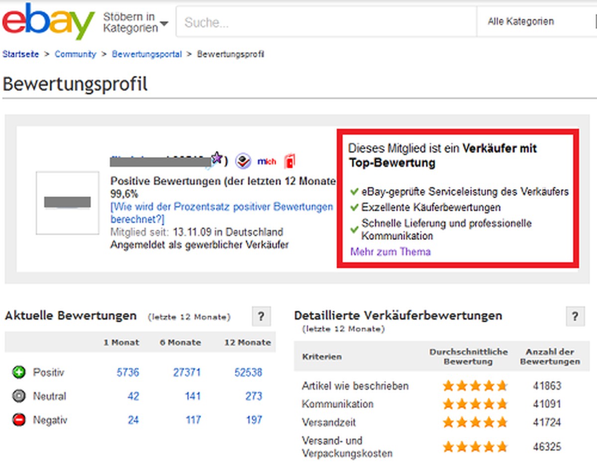 Jedes ebay mitglied hat ein bewertungsprofil.