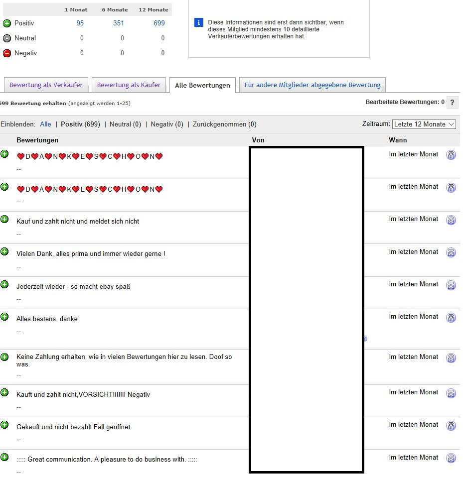 Aber anscheinend reanimiert ebay keine herausgenommenen bewertung. Wer eine negative tatsache behauptet muss deren richtigkeit beweisen. Nicht immer ist es notwendig gleich negativ zu bewerten. Beitrag von peter müller 16 09 2017 12 00 uhr.