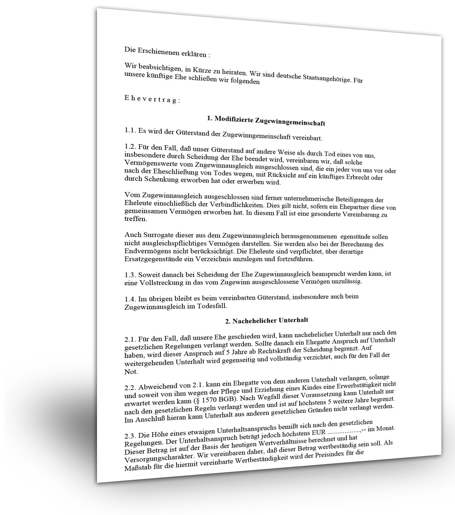 Ehevertrag Muster Modifizierte Zugewinngemeinschaft