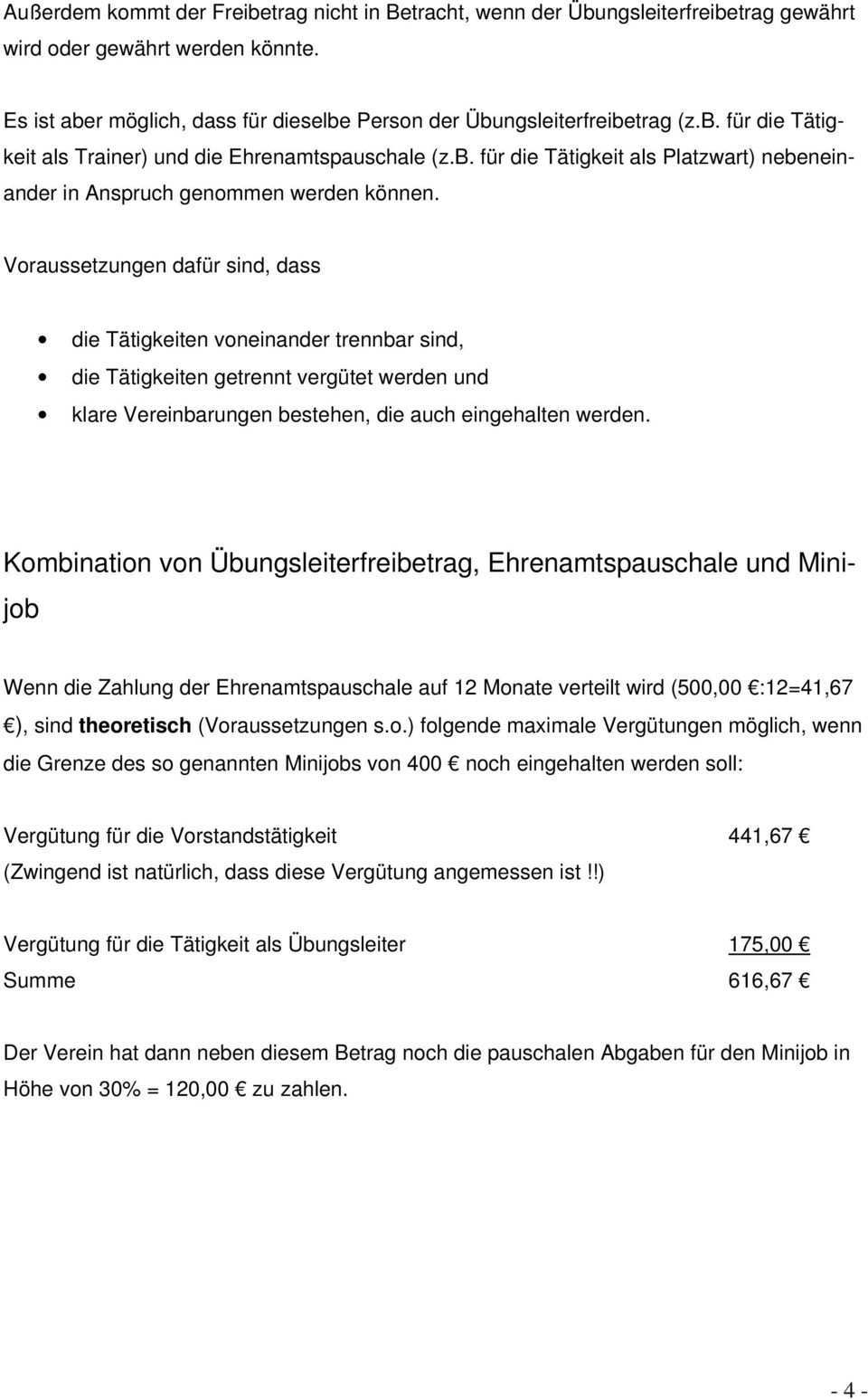 Vielleicht beschäftigen sie im verein ja auch mitarbeiter im rahmen der 450 grenze. Mit dieser regelung fördert der gesetzgeber die einnahmen aus nebenberuflicher. Höhe von maximal 2 400 euro jährlich oder mit der ehrenamtspauschale nach 3 nr. Es keiner regelung in der satzung.