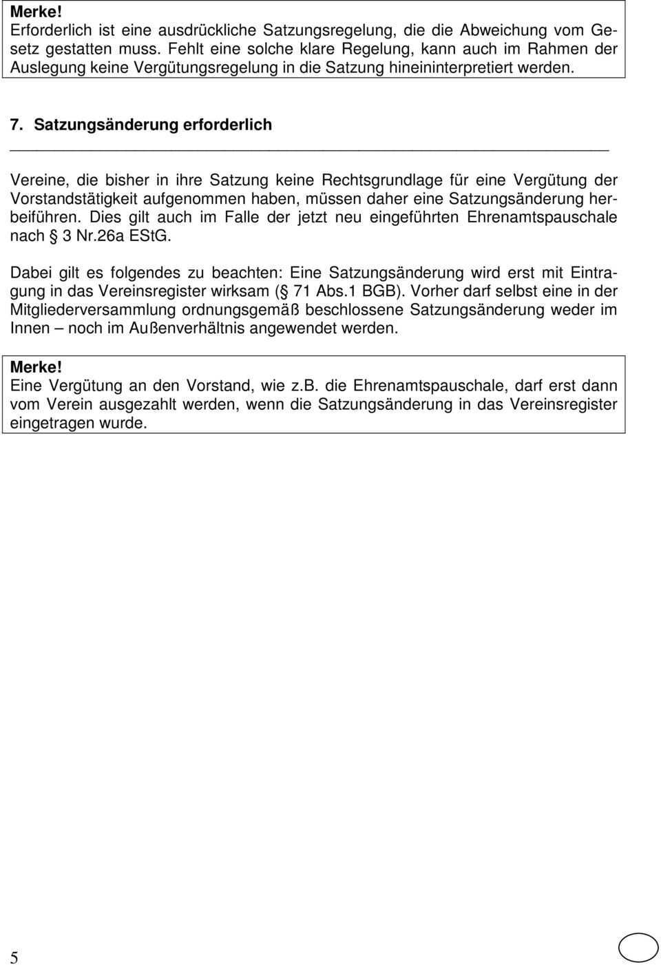 Doch auch hier gibt es eine wichtige unterscheidung. Muster für eine satzungregelung vergütungen für die vereinstätigkeit bei den parlamentarischen beratungen wurde der freibetrag regelmäßig als ehrenamtspauschale bezeichnet. Vorstandsmitglieder können die ehrenamtspauschale nur dann nutzen wenn die satzung des vereins die möglichkeit hierzu eröffnet anwendungserlass zur. Voraussetzung ist dass nur die tatsächlich entstandenen.