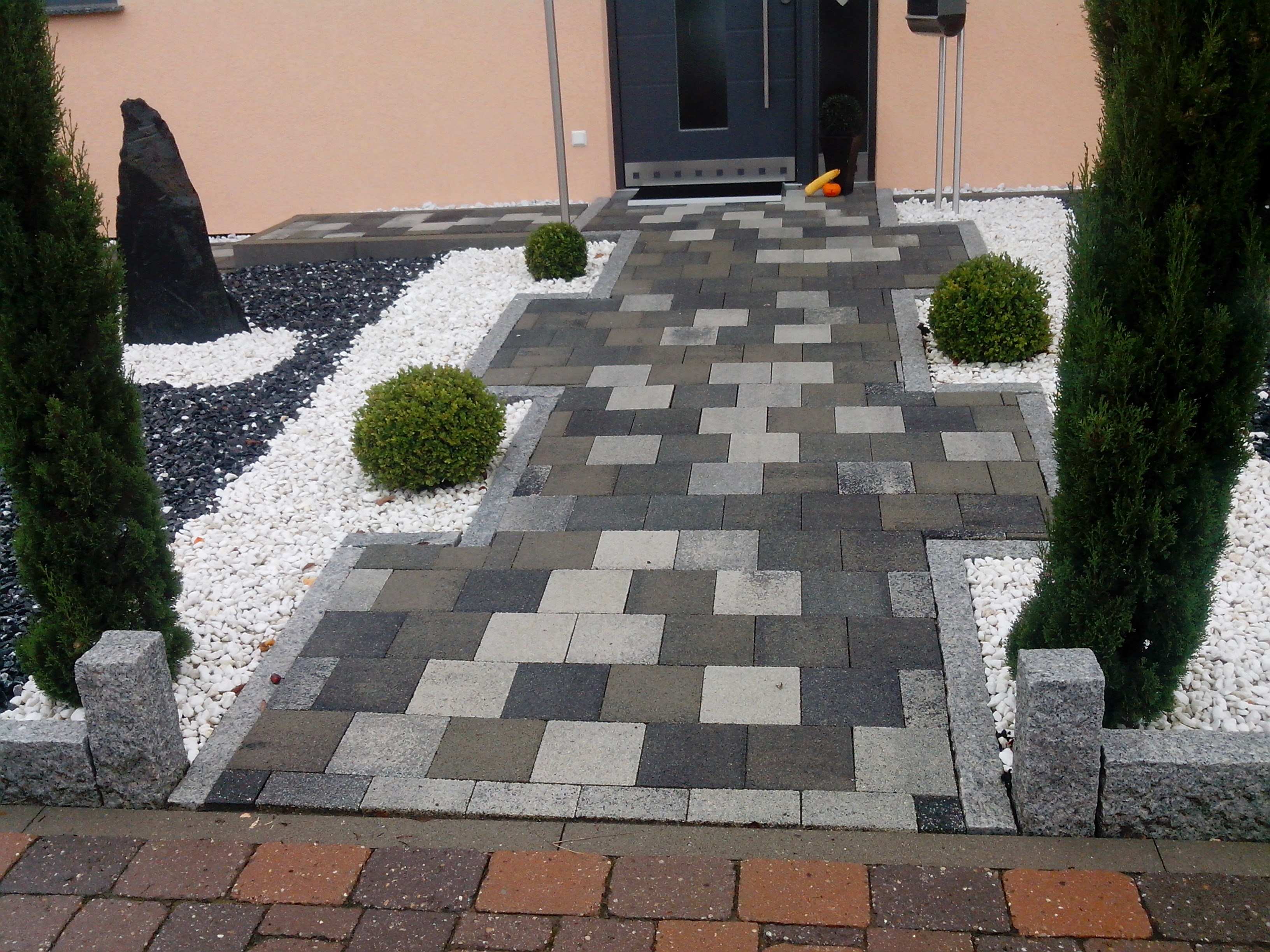 Pflasterplatten unregelmäßige verlegemuster kommen dem sehr entgegen. Beim pflastern spielt auch die optik eine wichtige rolle. Der eingangsbereich sollte trittsicher und frei von rutsch und stolperfallen sein. Und wenn das haus auf einer anhöhe liegt dann können pflanzen in verschiedener höhe kombiniert werden zum beispiel vorne niedrige gräser und sukkulente in der mitte mittelhohe buschgruppen und hinten hausbäume.