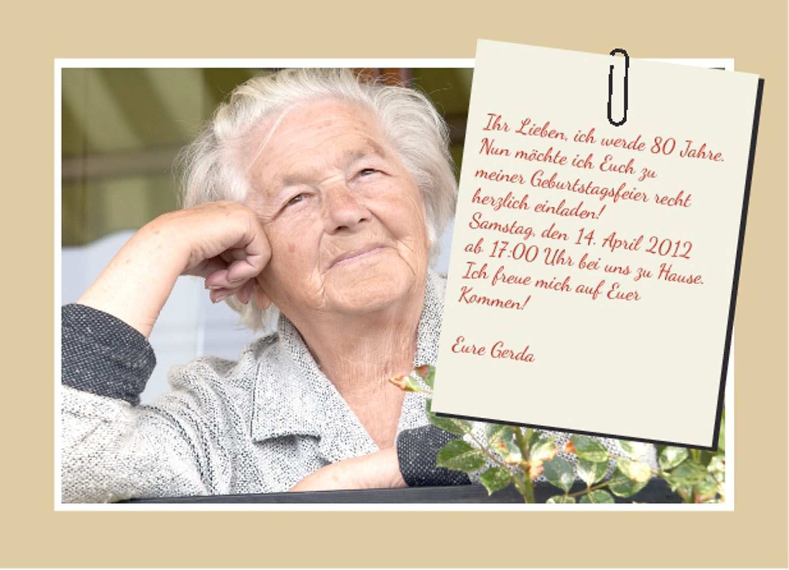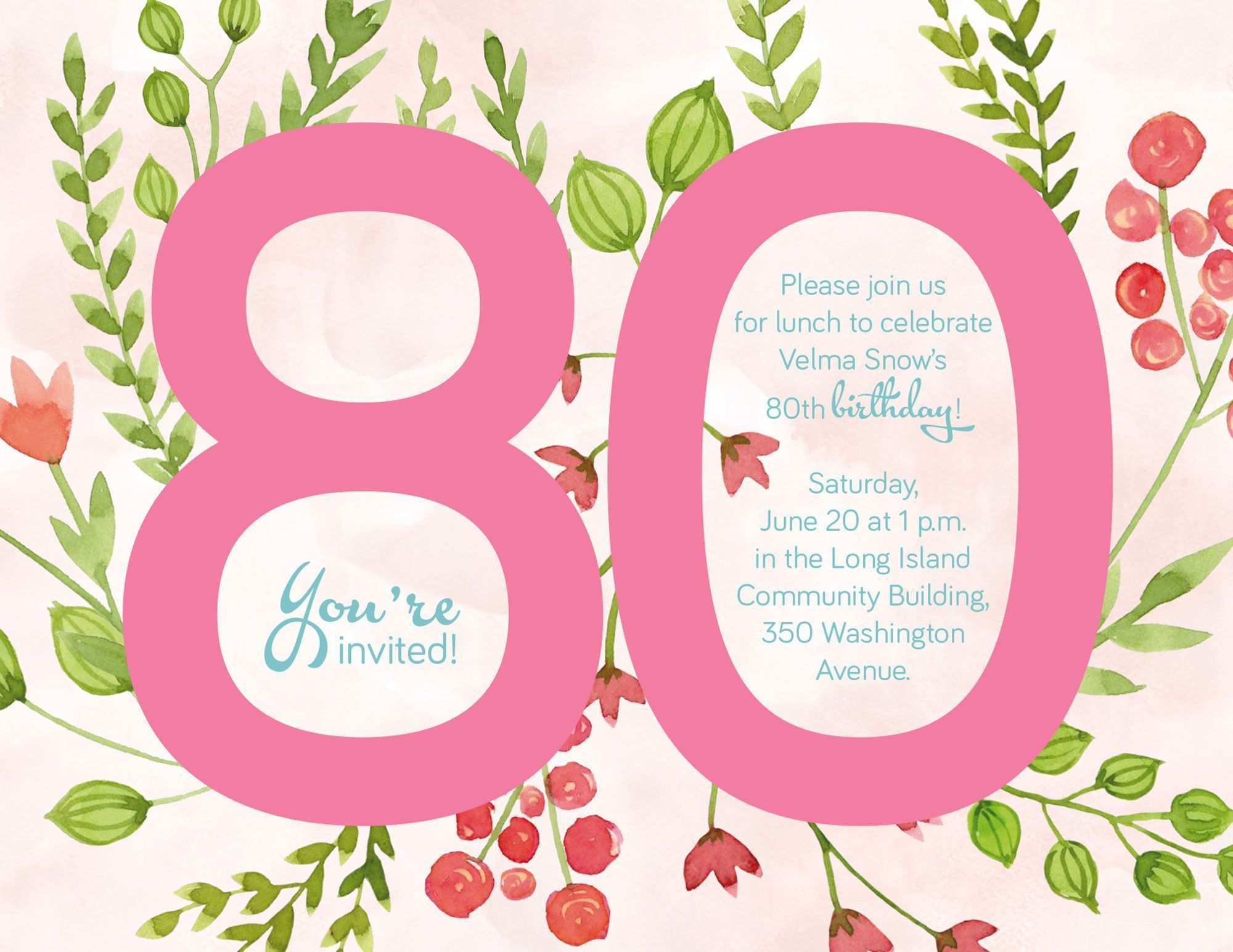 Laden sie ihre gäste mit herzlichen worten zu ihrem 80. Jede einladungsvorlage kann bearbeitet sein sodass sie ebendiese mit dem kostenlosen adobe reader zu hause via ihren eigenen party details personalisieren können. Geburtstag fällt wahrscheinlich nicht mehr so üppig aus wie bei einem 50. Ich freue mich auf zahlreiches erscheinen um mich mit euch wieder zu vereinen.