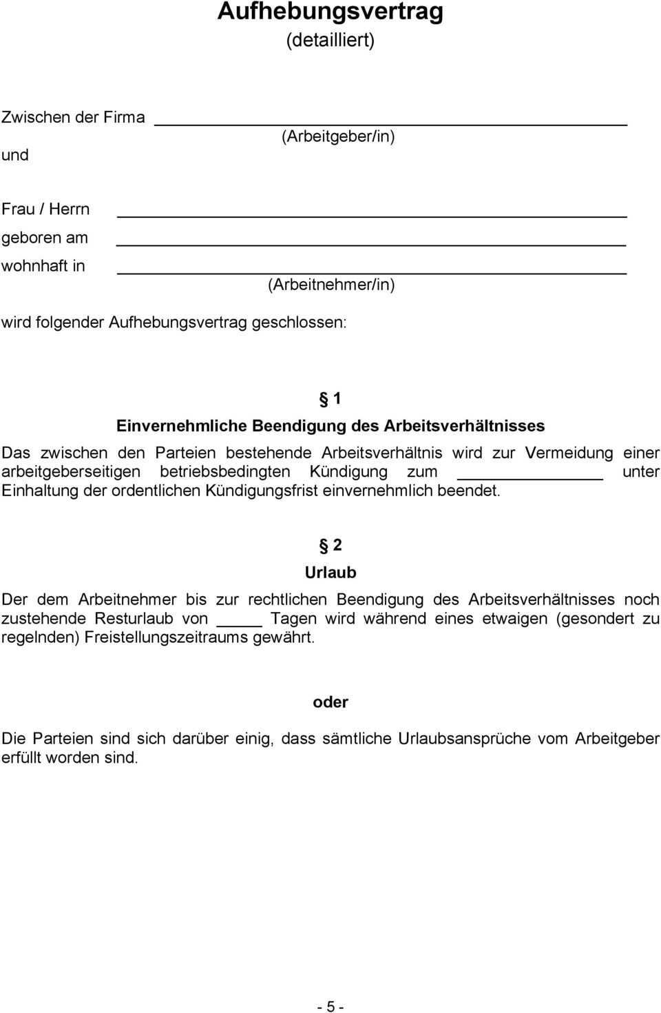 Den link zum download der vertragsvorlage als pdf und word dokument finden sie am ende dieser seite. Es enthält klauseln zu den restlichen bezügen zur abfindung zu einer möglichen freistellung zum restlichen urlaubsanspruch zum arbeitszeugnis zur betrieblichen altersversorgung zum wettbewerbsverbot zu versicherungen zur rückgabe von firmeneigentum und mehr. Falls in ihrem pakt angegeben ist falls sie innerhalb von seiten 3 tagen abliefern können sie nach 2 nicht verklagt werden. Lassen sie sich beraten ihren vertrag wegen höherer gewalt zu kündigen ein arbeitsvertrag ob begrenzt oder unbegrenzt kann von einer der parteien gemäß dem arbeitsgesetz der vae fristlos gekündigt werden.