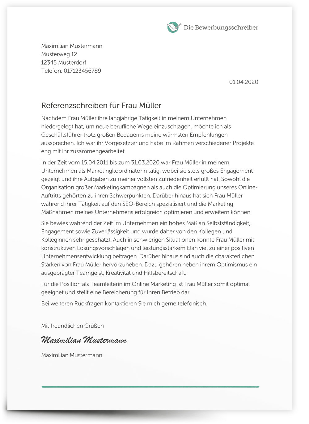 Name und adresse des referenzgebers datum empfängername und adresse empfehlungsschreiben für frau xy sehr geehrte r frau herr nach langjähriger und hervorragender arbeit in unserem haus hat sich frau xy nun dazu.