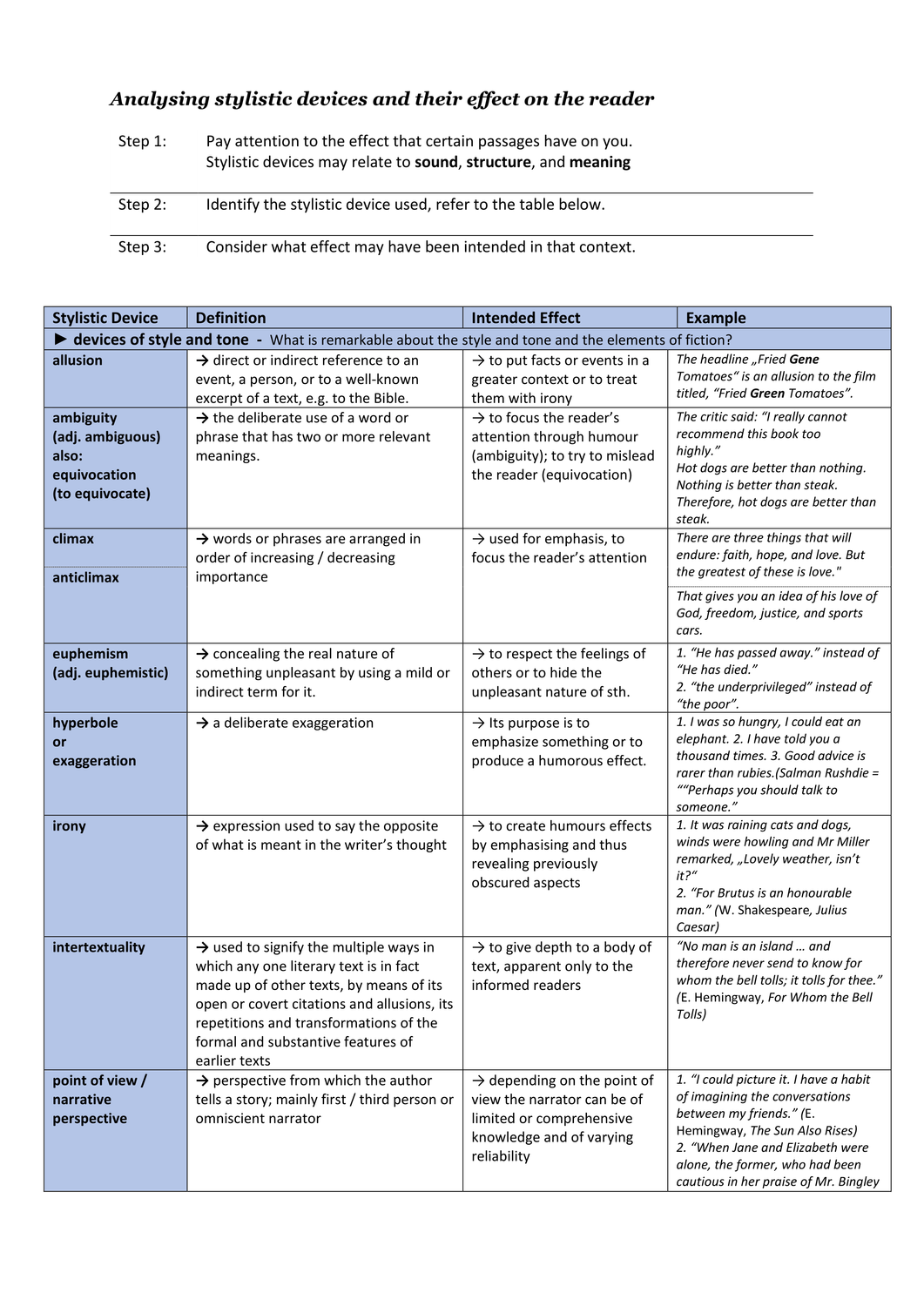 Englisch analyse beispiel. Beispiele werden verwendet um den sachgegenstand zu veranschaulichen. Eine deutungshypothese ist eine vermutung die du zu beginn deiner analyse aufstellst. Hab ich im englischen eig. Example of a speech analysis key facts obama wants to call the audience s attention with a direct address at the beginning of his speech you can be the majority his frequent use of personal pronouns such as our and us gives the audience the feeling that he does not regard himself as superior to them but as one of them.