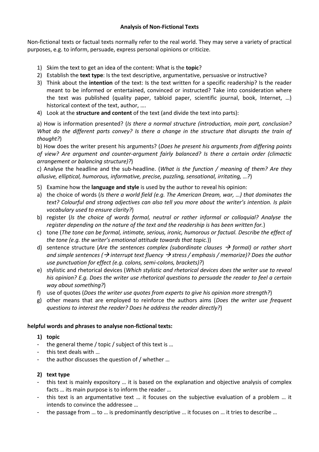 Zu diesen gehören zum beispiel essays und politische reden. Aufbau und beispiele in diesem artikel wird dir erklärt wie du eine speech analysis richtig aufbaust und welche faktoren für einen gelungene arbeit wichtig sind. Handelt es sich um einen fiktionalen text oder sollst du auf englisch eine sachtextanalyse verfassen. Diese textform ist für viele zunächst eine besonders knifflige aufgabenstellung.