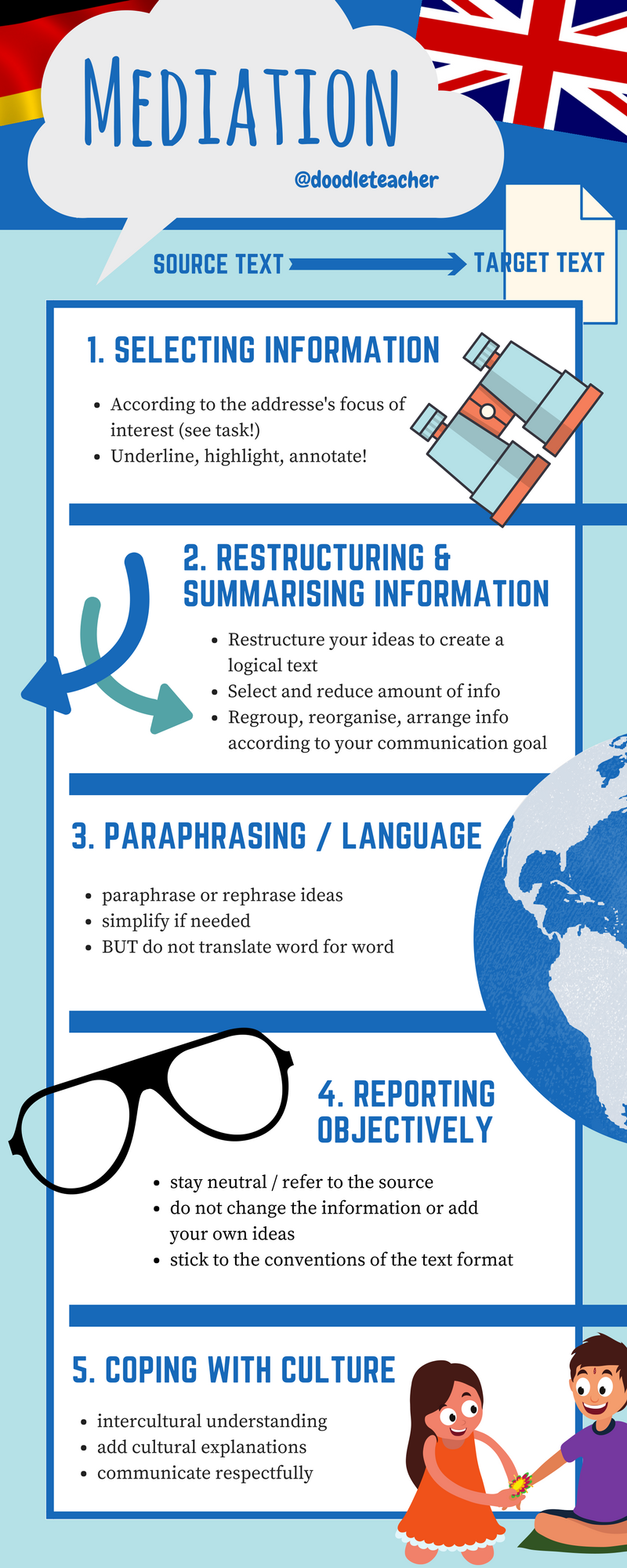 Nur weiß ich nicht wie das gehen soll. Read all the tasks first. Der ausgangstext der mediation ist häufig auf englisch. Das nennt man dann mediation.