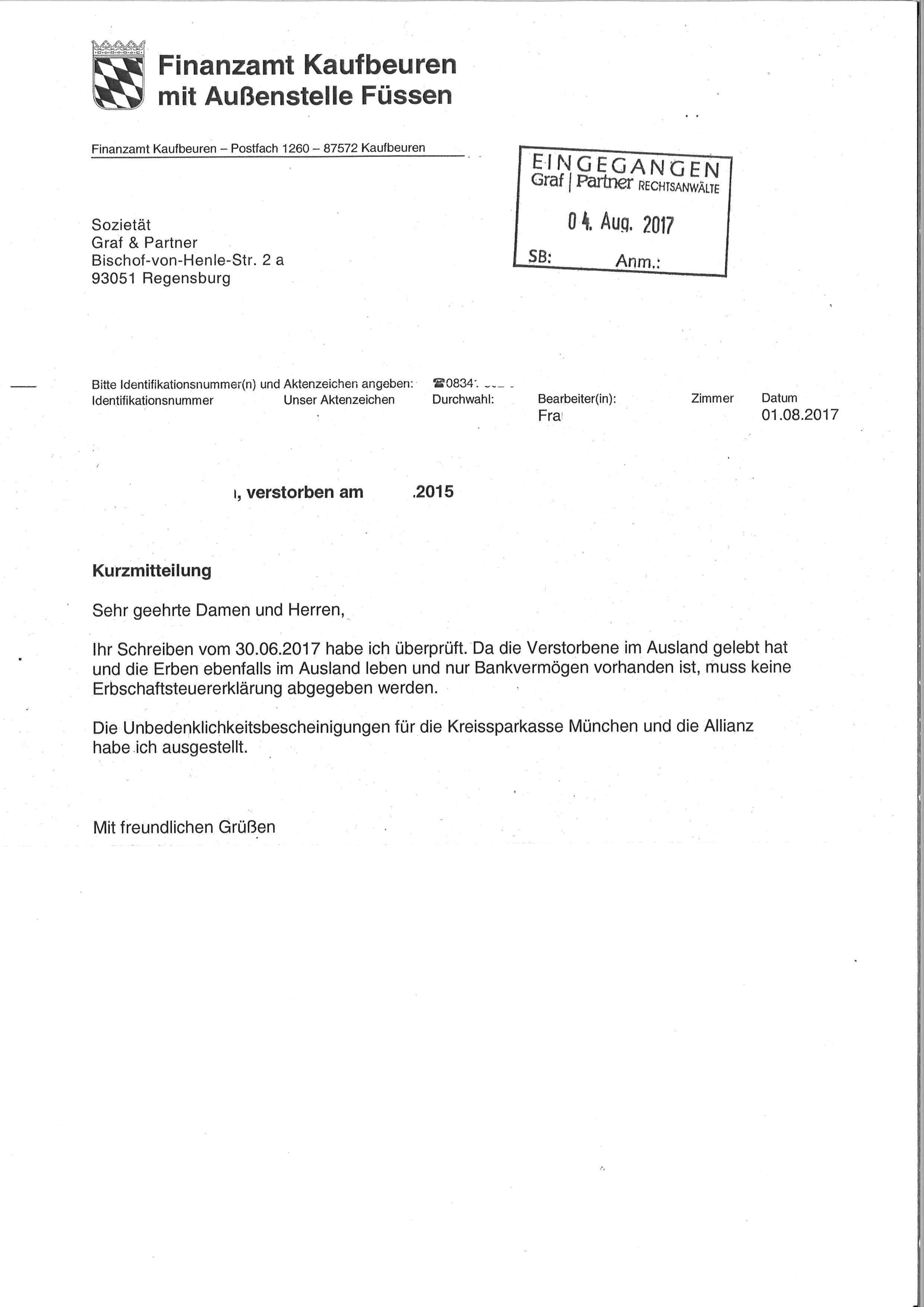 Wir stellen ihnen eine solche vorlage kostenlos zum herunterladen zur verfügung. Erbfall name geburts und sterbedatum des der verstorbenen sehr geehrte damen und herren mein ehemann name ist am datum gestorben. 1 80000 münchen die erteilung folgenden erbscheins. Abteilung für nachlasssachen.