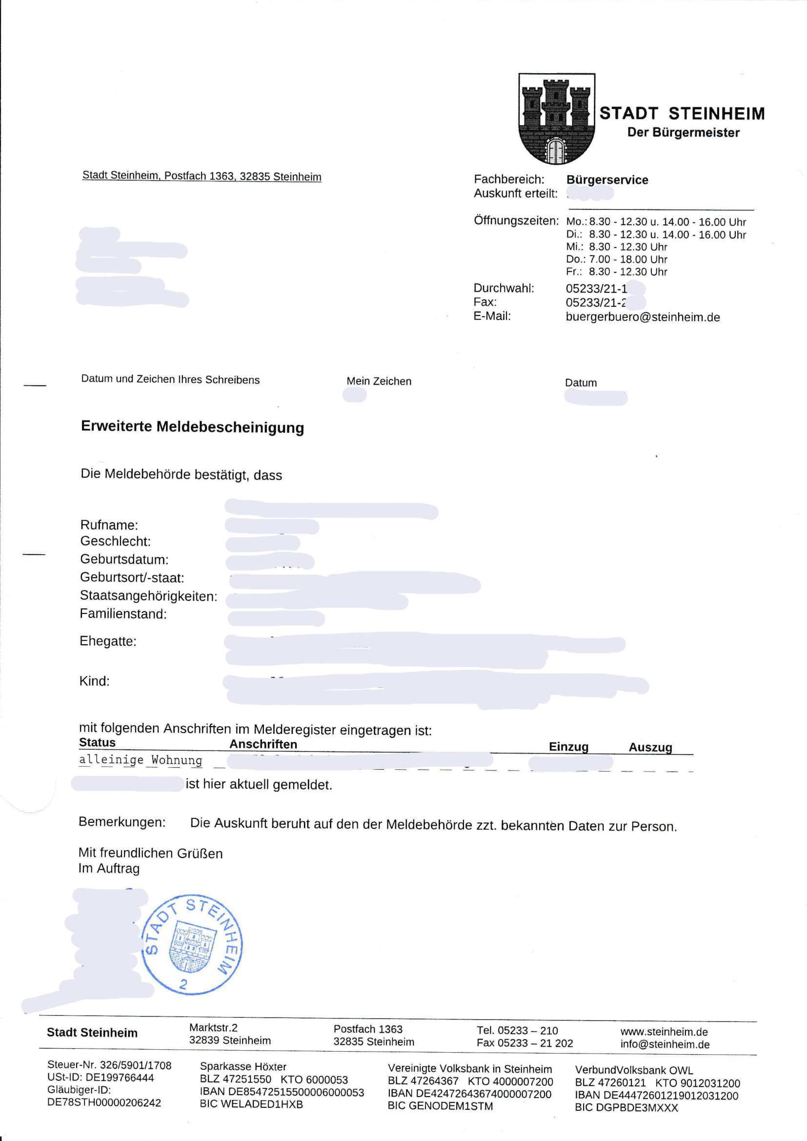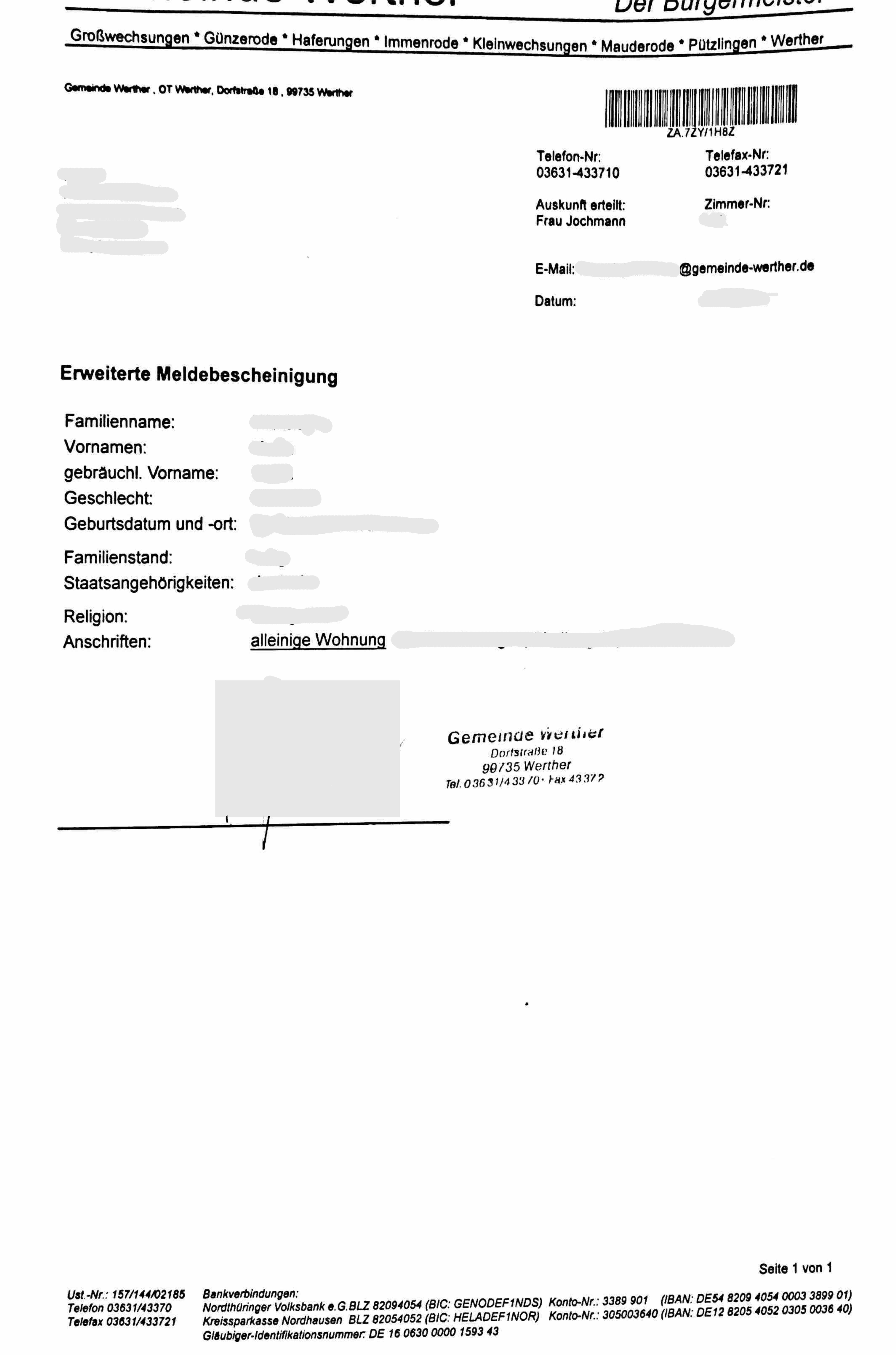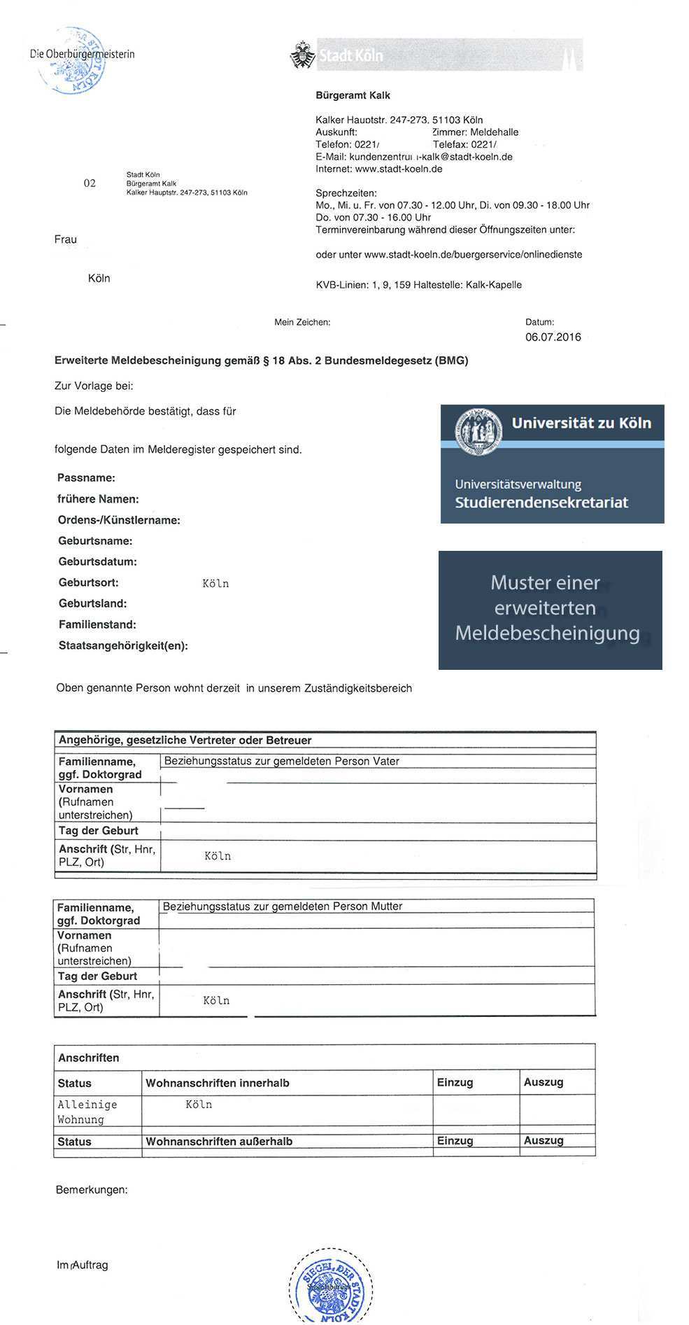 Two residences main residence and secondary residence hauptwohnsitz und nebenwohnsitz you can registered. Sie erhalten nach kauf und bezahlung eine hübsch formatierte und korrektur gelesene worddatei mit der übersetzten urkunde zum download in die sie nur noch personenbezogene daten ihre beglaubigungsformel und ggf. Bürgerservice erweiterte meldebescheinigung bürgerservice erweiterte meldebescheinigung. Zusammen mit dieser vollmacht ist auch der personalausweis reisepass der erklärenden vorzulegen.