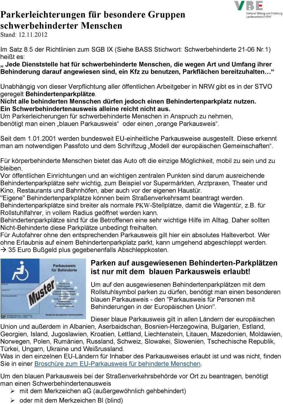Zum eu parkausweis d 44287 dortmund nachdruck nicht gestattet. Darauf weist der landesbeauftragte für menschen mit behinderungen karl finke hin. Benötigst du einen parkausweis. Er ist nicht auf ein bestimmtes auto eingetragen sondern auf den inhaber.