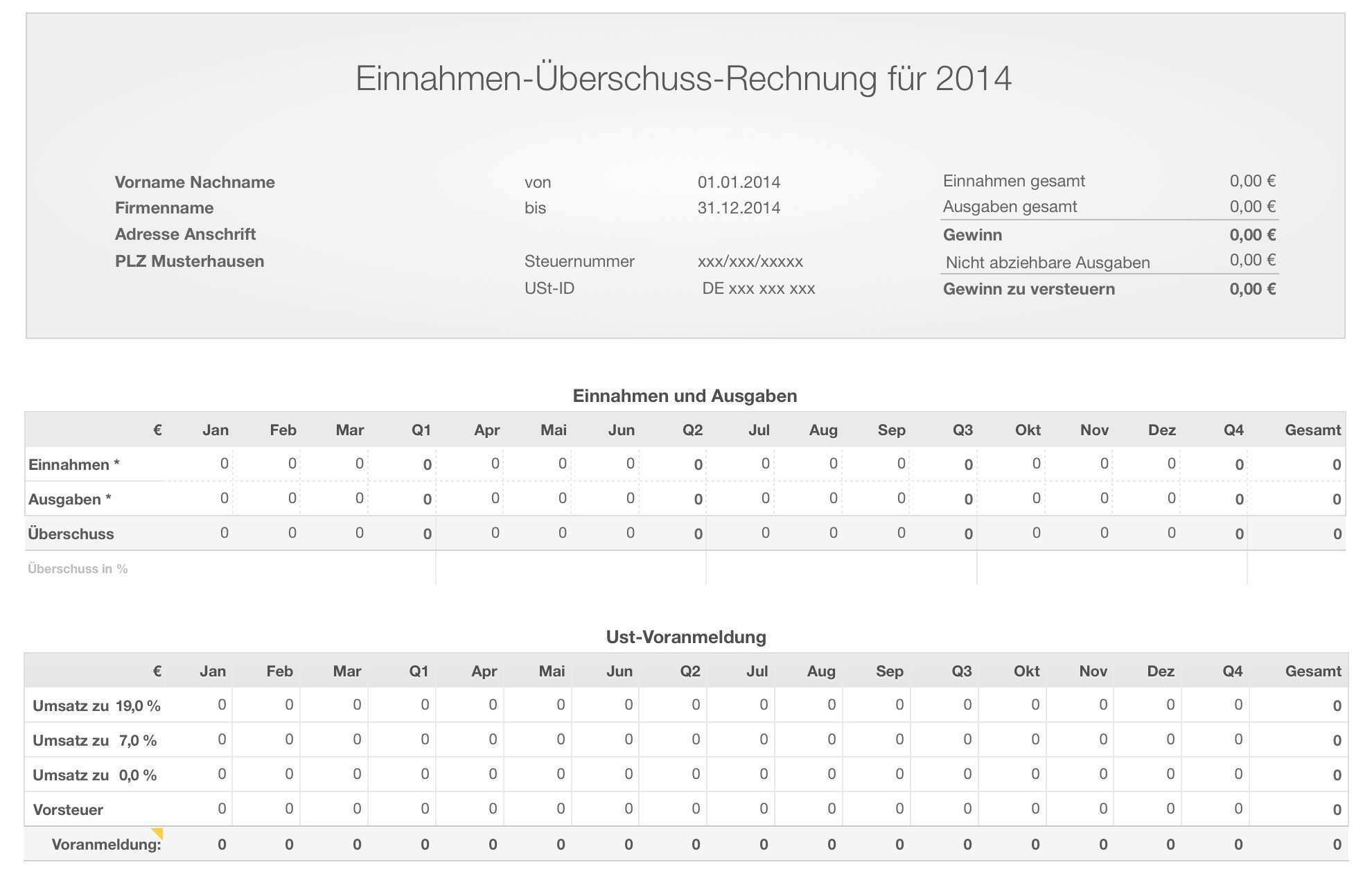 In diesem zusammenhang spielt es keine rolle ob sie als freiberufler oder gewerbetreibender tätig sind. Sonst hält das aktuelle amtliche formular zur einnahmeüberschussrechnung kaum überraschungen bereit. Beim download erhältst du neben der blanko datei für deine zahlen auch eine muster vorlage. Inklusive bedienungsanleitung tipps und muster vorlage.