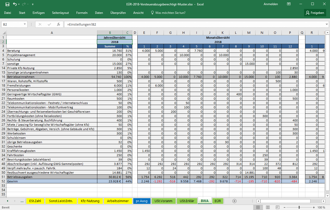 Die eür dient ihnen als unternehmer als einfache form der gewinnermittlung. Eine kostenlose eür vorlage oder ein gratis eür muster in excel stellt hierbei einen großen vorteil und eine enorme arbeitserleichterung dar.