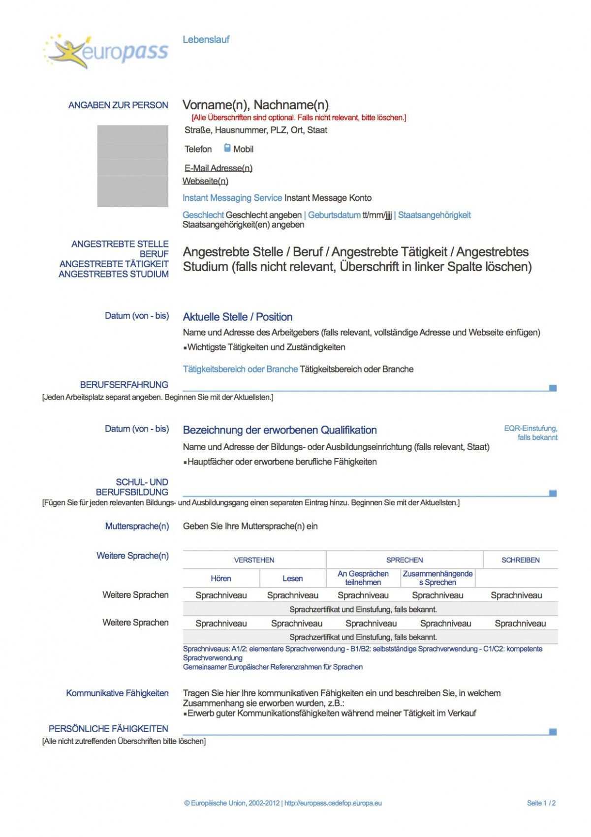 Europass Lebenslauf Vorlage