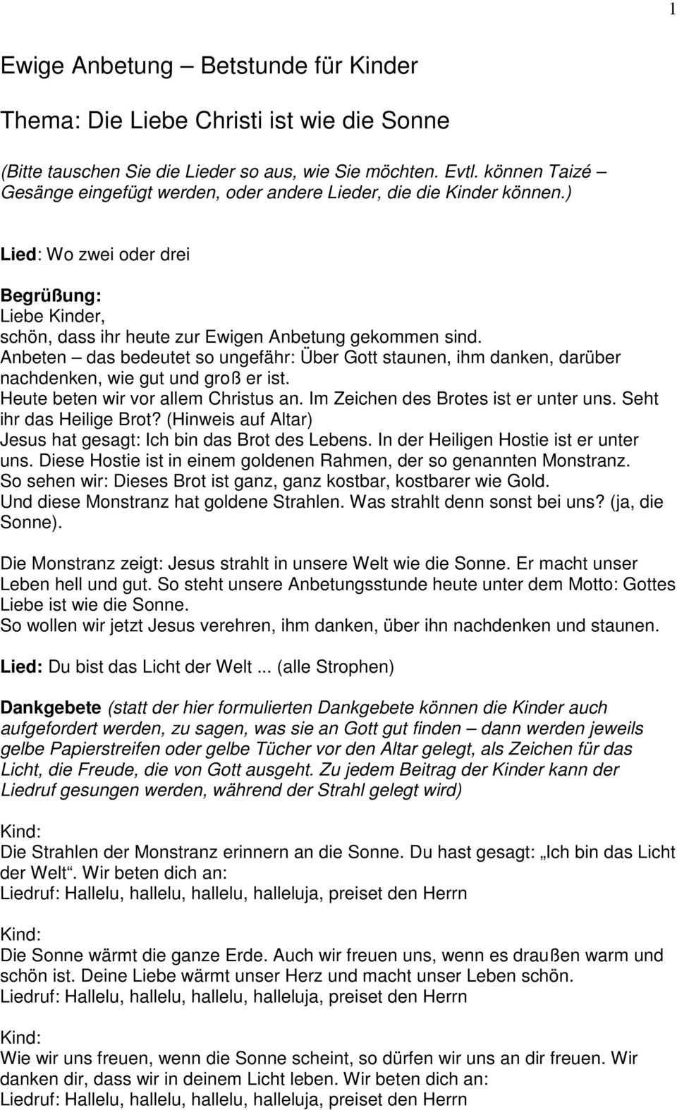 Sämtliche vorlagen liegen im pdf format zum ausdrucken und im offenen format zur eigenen bearbeitung vor. In der bibel wird der akt der anbetung mit dem griechischen wort proskynesis zu deutsch. Darum bitten wir im namen jesu unseres herrn. Kindergebetsstunde zur ewigen anbetung.