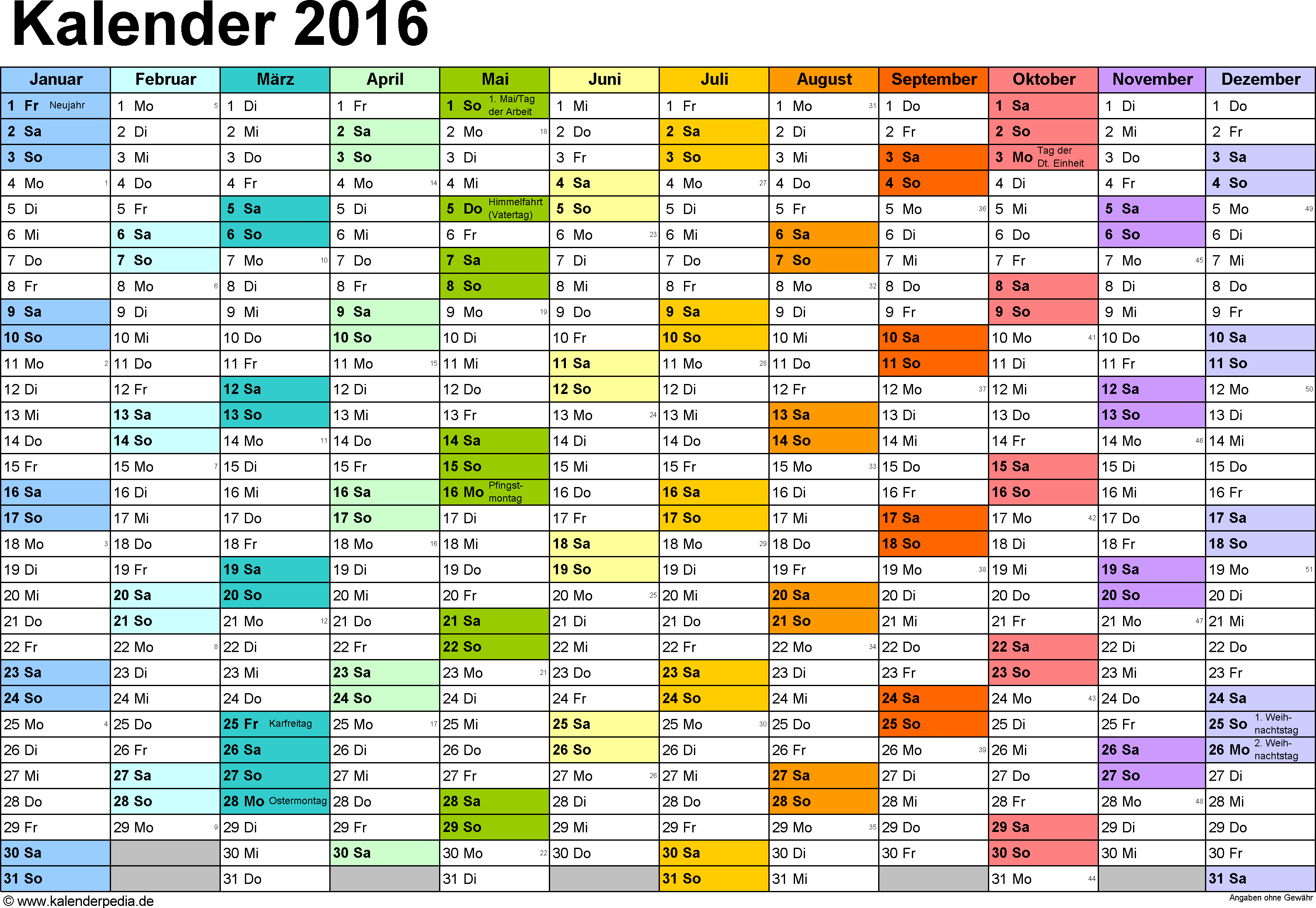 Klicken sie einfach auf die gewünschte kalender version und der download startet automatisch. Sie sind ideal für den einsatz als kalkulationstabellenplaner. Jeder monat in einer anderen farbe regenbogen kalender monate nebeneinander waagerecht horizontal tage untereinander senkrecht vertikal. Sepertinya baru kemarin merayakan tahun baru 2015 namun beberapa hari lagi tak terasa sudah menginjak 2016.