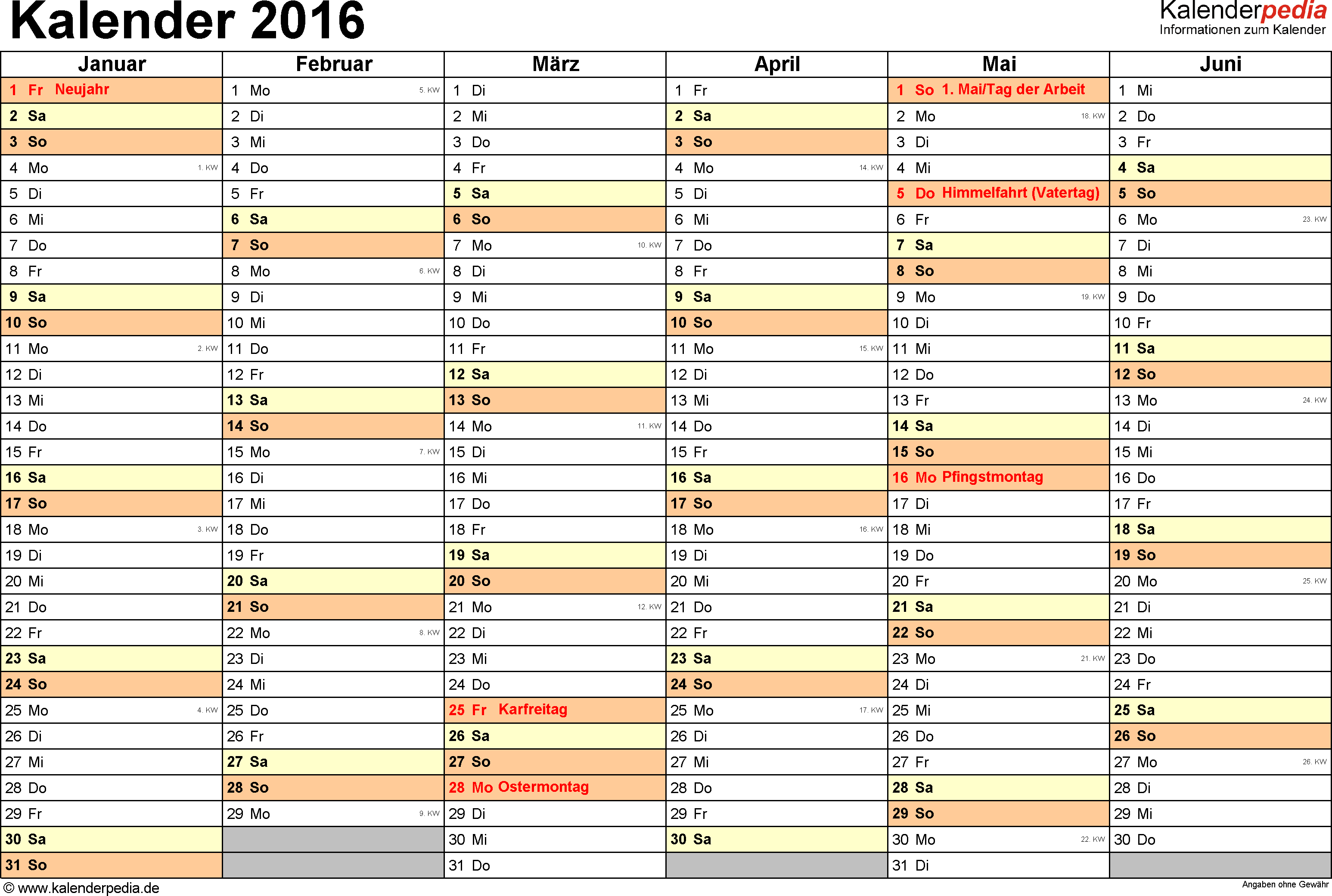 So laden sie die excel vorlagen herunter und speichern diese auf ihrem pc. Kostenlose 2016 excel kalender vorlagen. Die folgenden kalender 2016 im excel format eignen sich sowohl als vorlage für den ganzseiten ausdruck im din a4 querformat also auch für den halbseiten ausdruck im hochformat als din a5 kalender. Kalender 2016 für excel vorlage 1.