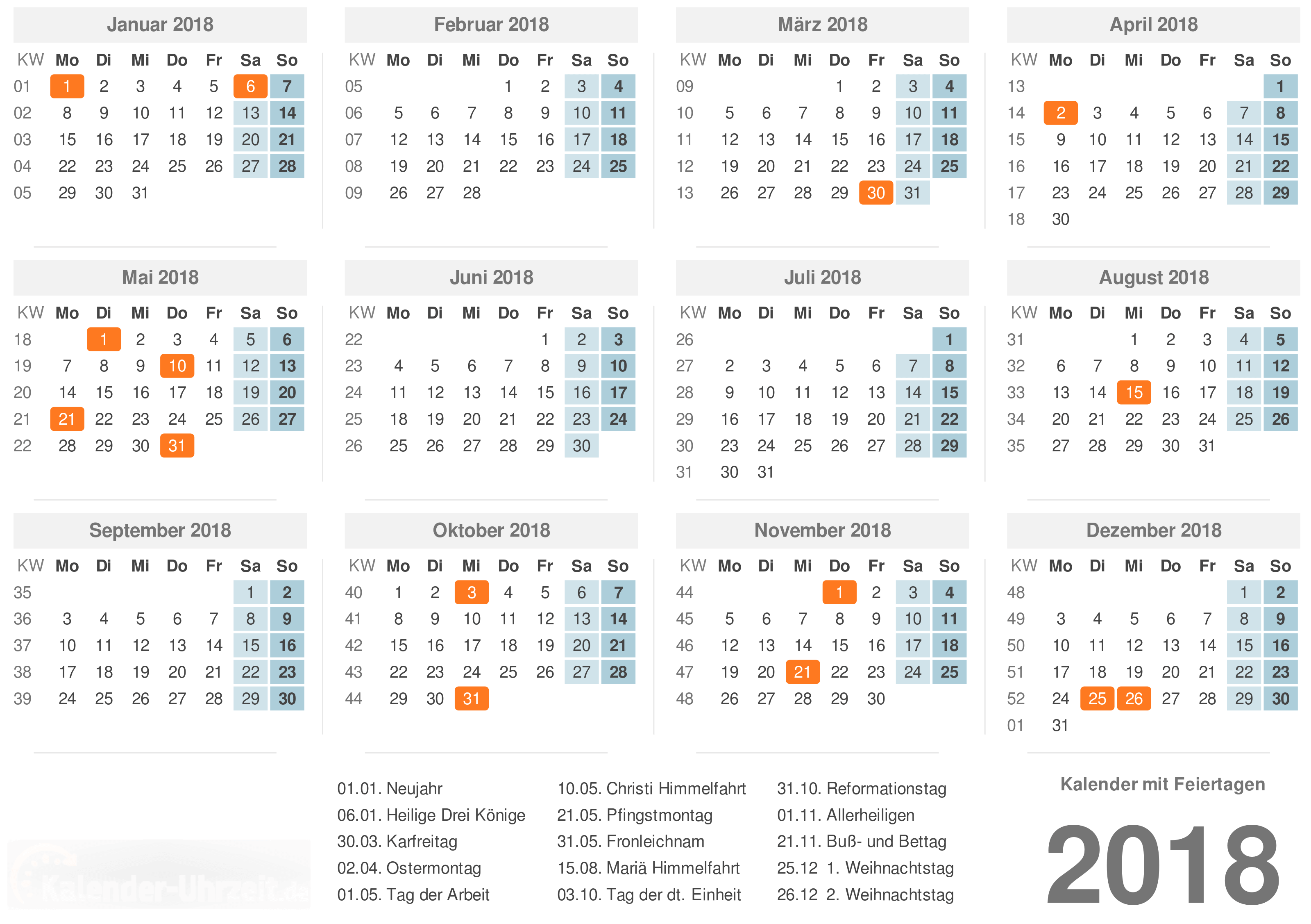 Es werden viele veranstaltungen im jahr 2018 stattfinden. Wenn sie planen ihr team direkt zu unterstützen können sie beginnen jetzt ein flugticket und hotel zu buchen um einen günstigeren preis zu bekommen. Kalender 2018 als vorlagen für excel word und pdf eine auswahl verschiedener kalendervorlagen für 2018 mit farblich markierten bundesweiten feiertagen und kalenderwochen im din a4 format geeignet für eine vielzahl von anwendungen. Wie auch bei den obigen excel kalendern können sie die ferienkalender als jahreskalender halbjahreskalender quartalskalender oder monatskalender für ihr bundesland kostenlos herunterladen und ausdrucken.