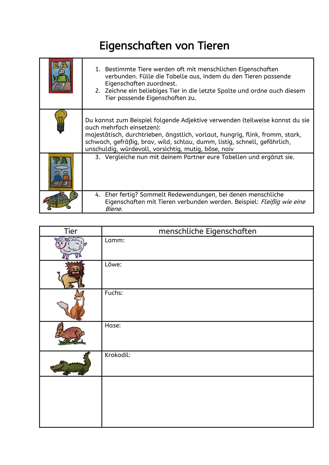 In fabeln gibt es sogenannte fabeltiere oder fabelwesen die menschliche eigenschaften verkörpern sie denken und handeln wie menschen werden also personifiziert. Die fabelwesen verkörpern menschliche stereotype. Auf über 50 seiten finden sich fabeln von äsop lessing und la fontaine. Schreiben fabulieren rätseln zerschneiden.