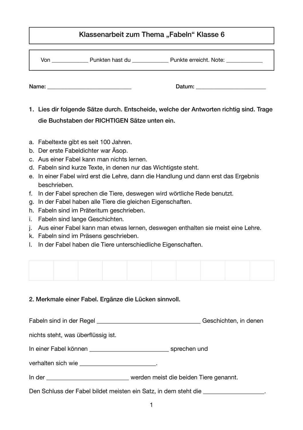 6 gymnasium fos rheinland pfalz 23 kb klassenarbeit fabel fabeln klasse 6 anbei eine klassenarbeit zum thema fabeln die ich so in einer 6. Klasse damit in berührung.