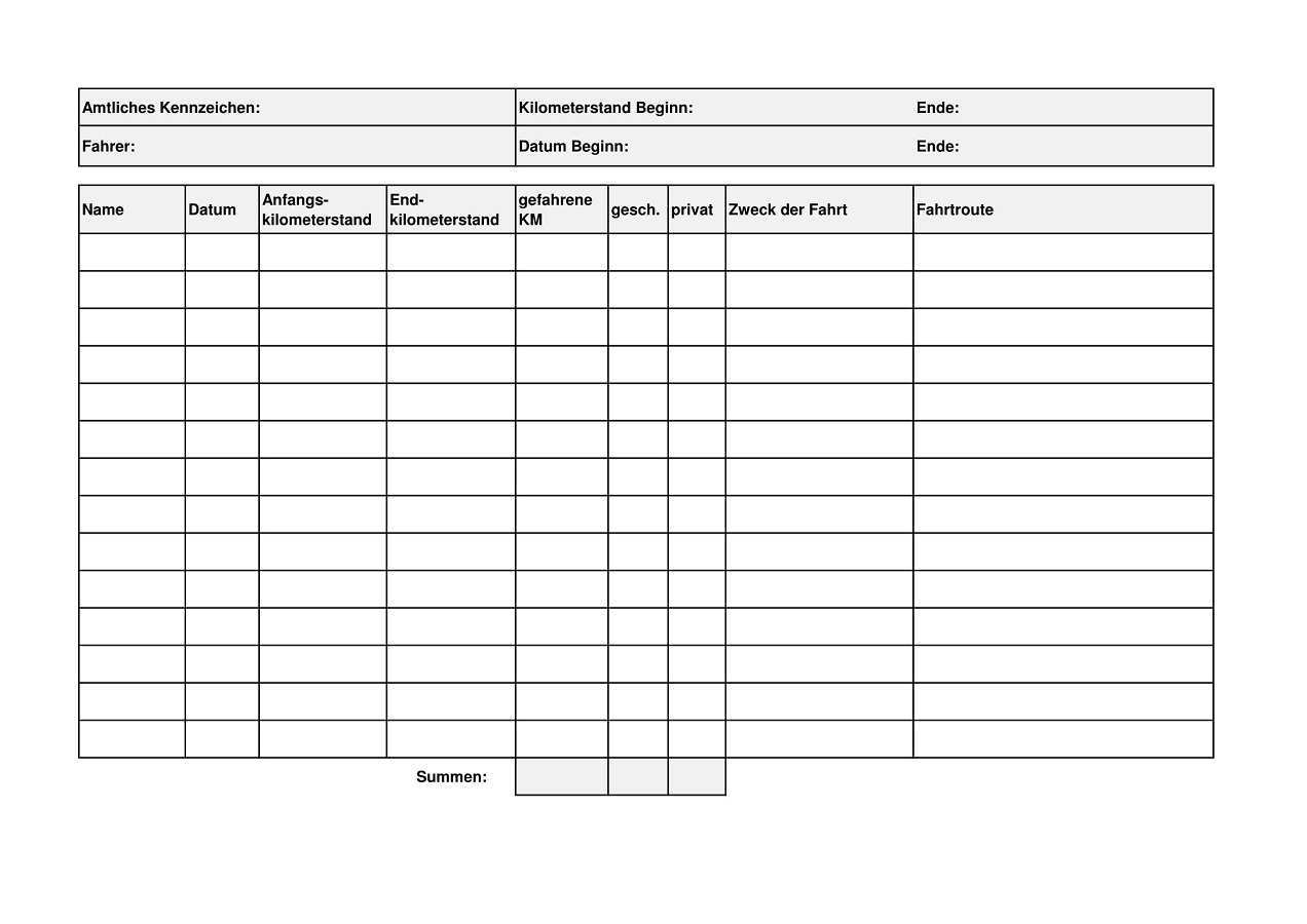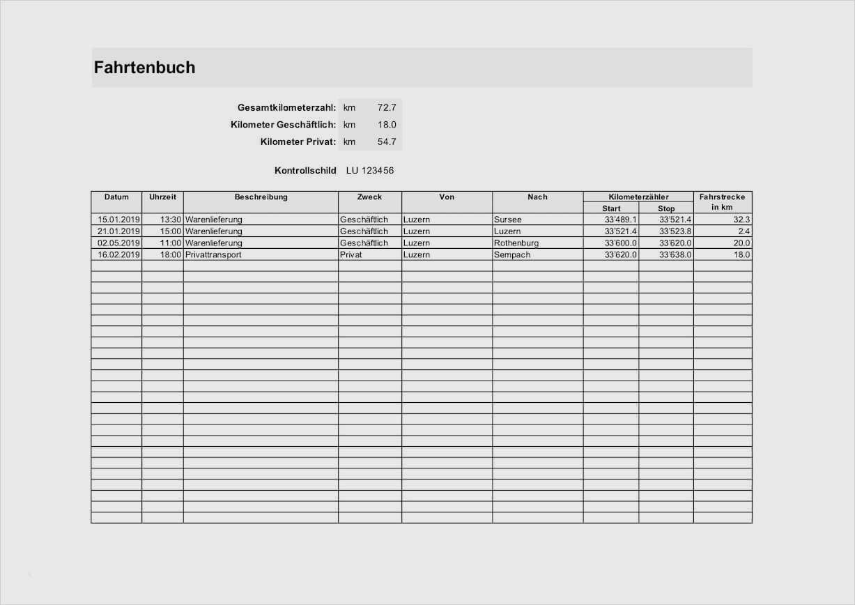 Fahrtenbuch Muster Ausgefuellt