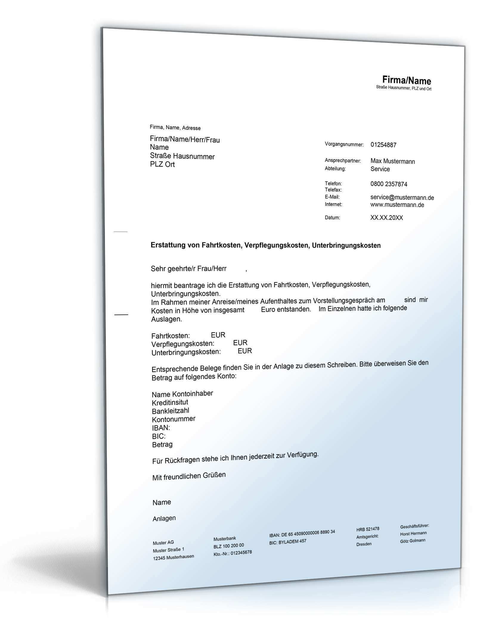 Fahrtkosten Vorstellungsgespraech Muster