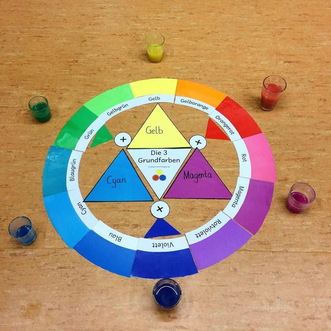 Wenn du wissen willst mit welchen farben du die felder ausmalen musst dann kannst du dir unsere farbkreis vorlage nach itten mit farbnamen ausdrucken.