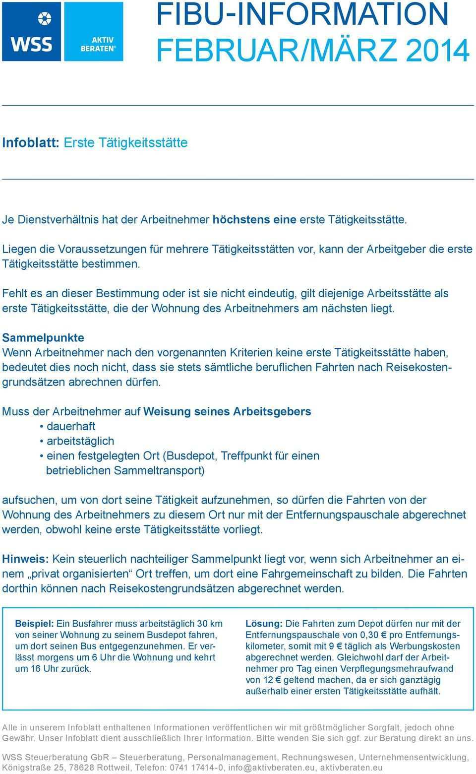 Grundsätzlich kann es in einem arbeitsverhältnis nur eine erste tätigkeitsstätte.