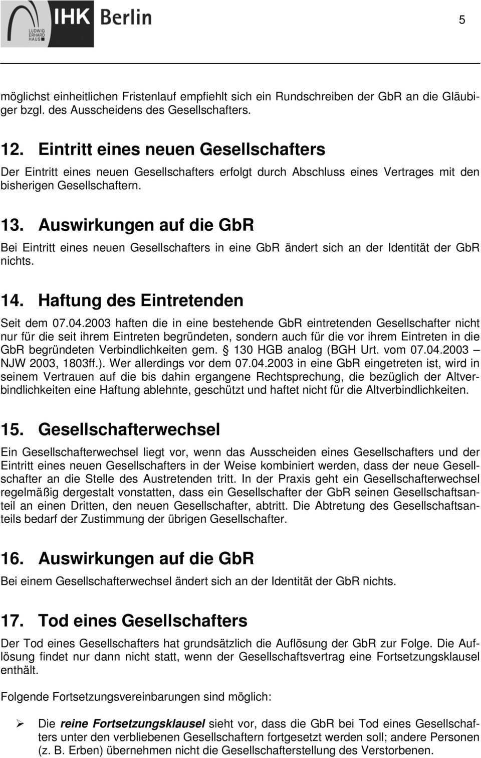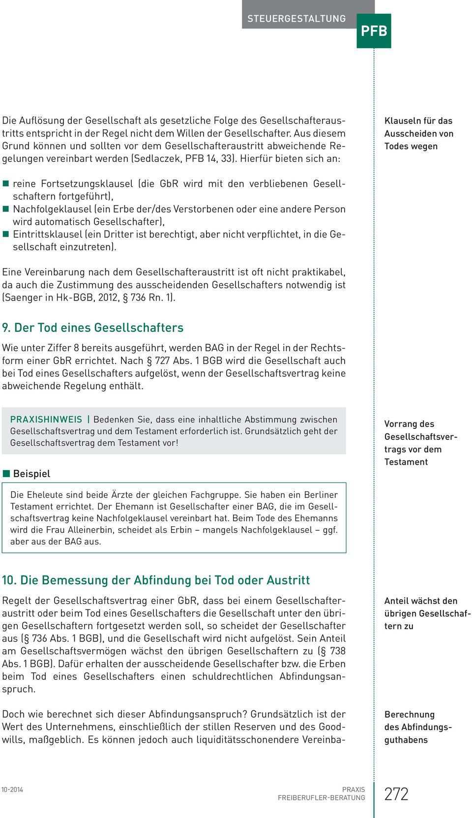 Demzufolge bedeutet der tod eines gesellschafters zunächst einmal auch das ende der gbr. 1 bgb zu verhindern. Denn in der regel wird nicht für alle sondern nur für einzelne beteiligungen eine rechtsgeschäftliche eintrittsklausel vereinbart. 738 bgb an.