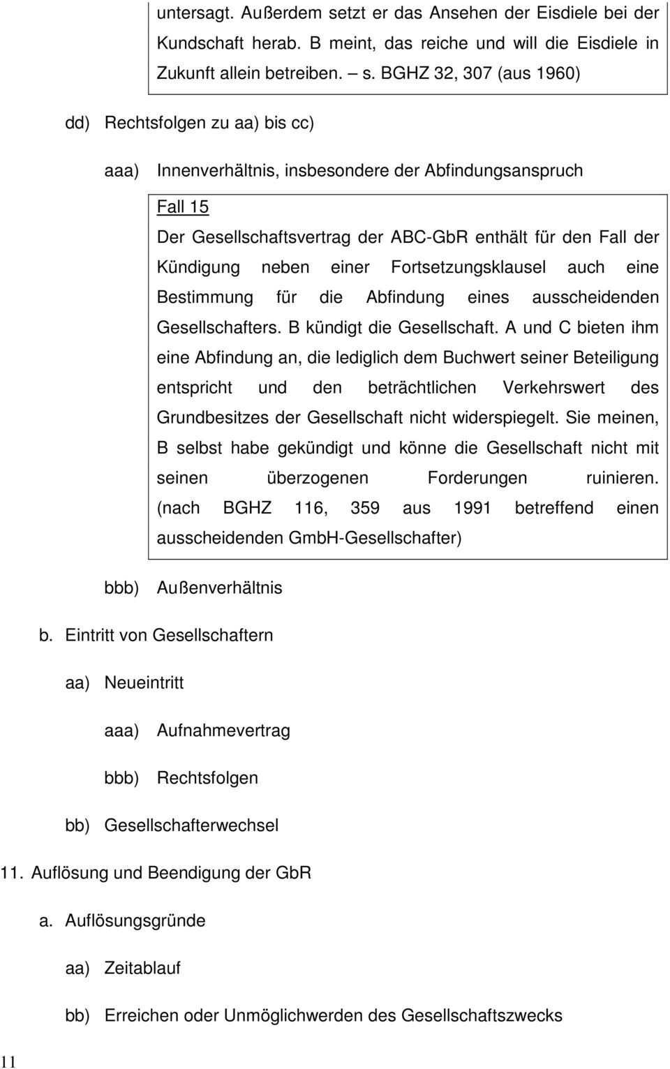Die fortsetzungsklausel ist dann so auszulegen dass der verbleibende gesellschafter das gesellschaftsvermögen mit allen aktiva und passiva übernimmt und es nicht zu einer liquidation des gesellschaftsvermögens kommt vgl. Fortsetzungsklausel es kann die fortsetzung der gbr mit den übrigen gesellschaftern mit oder ohne abfindung des erben gem. 738 740 bgb vorgesehen sein. 2 die gesellschaft führt den namen peter maier thomas müller steffen schmidt gbr.