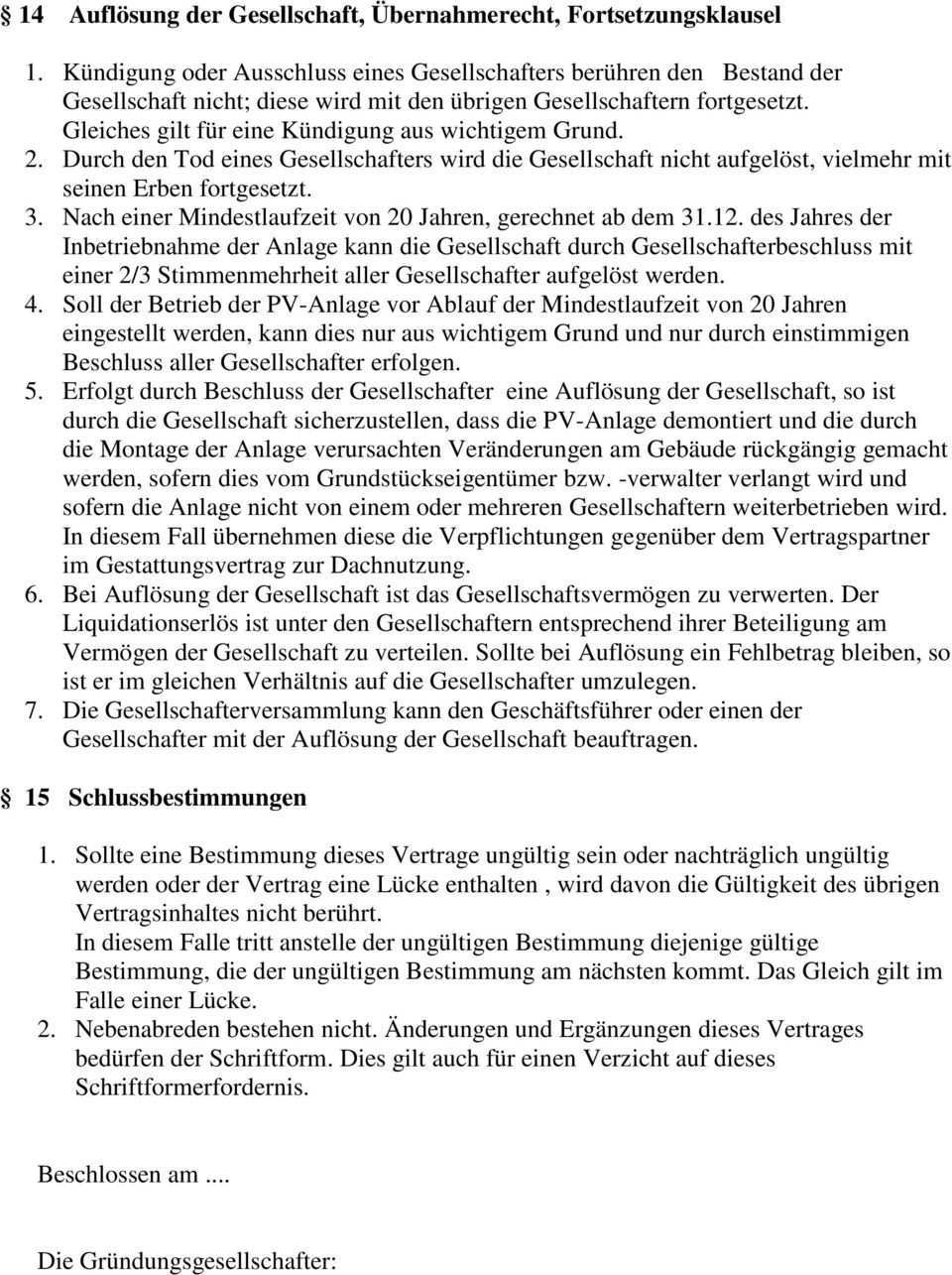 Fortsetzungsklausel gbr muster. Die formulierung in nr. Muster eines gesellschaftsvertrages zur gründung einer gesellschaft bürgerlichen rechts zwischen. Grundsätzlich ist der tod eines gesellschafters einer personengesellschaft ein auflösungsgrund. Dies ist wegen der fortführung der beziehungen zu den mandanten bzw.
