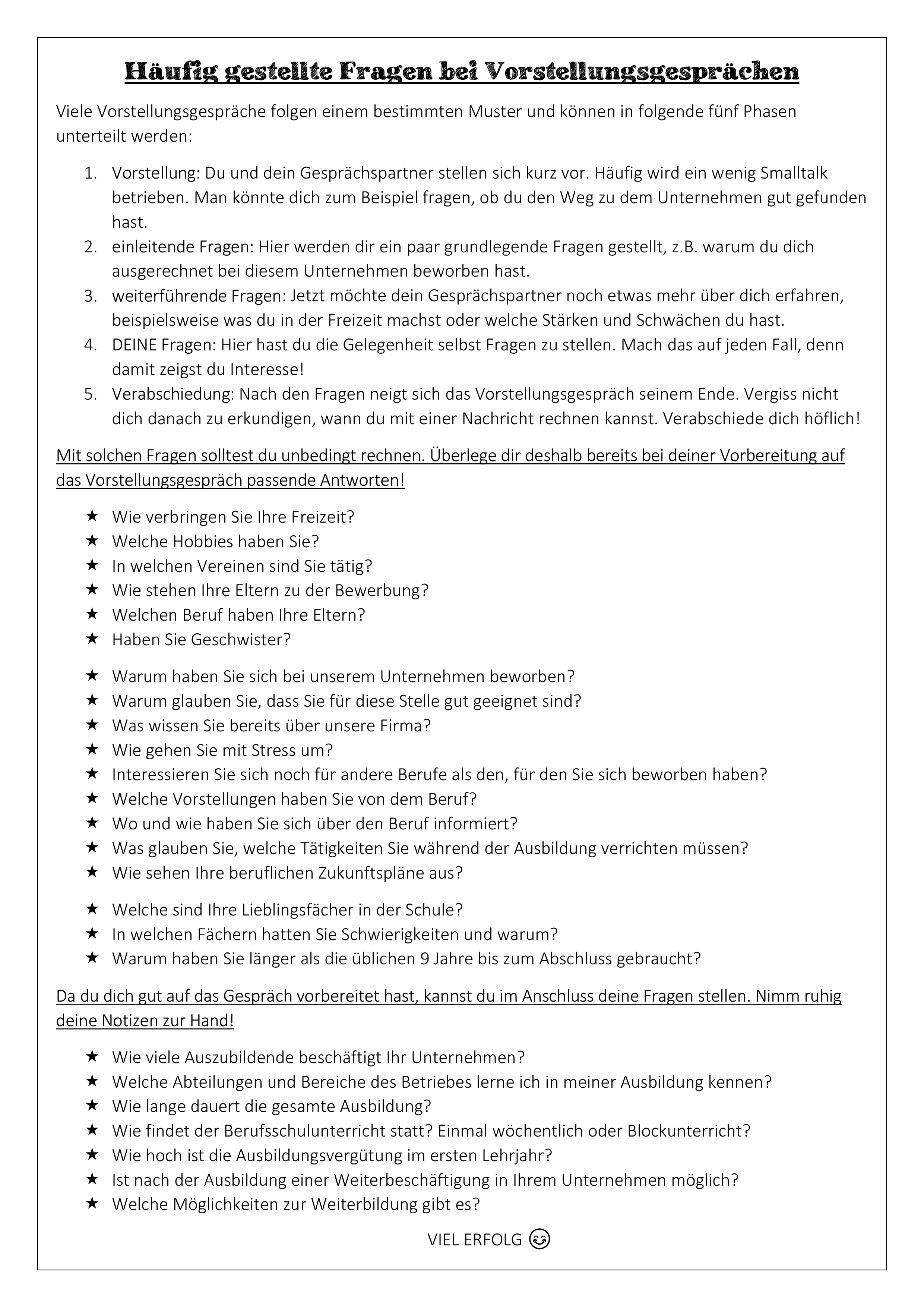 Je besser vorbereitet sie ein bewerberinterview führen umso fundierter wird ihre spätere. Doris brenner ist freie beraterin mit den schwerpunkten personalentwicklung und karriereberatung. Zum glück können sie sich auf die fragen beim vorstellungsgespräch gut vorbereiten. Das folgende muster vorstel lungs ge spräch zeigt die typischen phasen eines bewerbungsgesprächs auf.