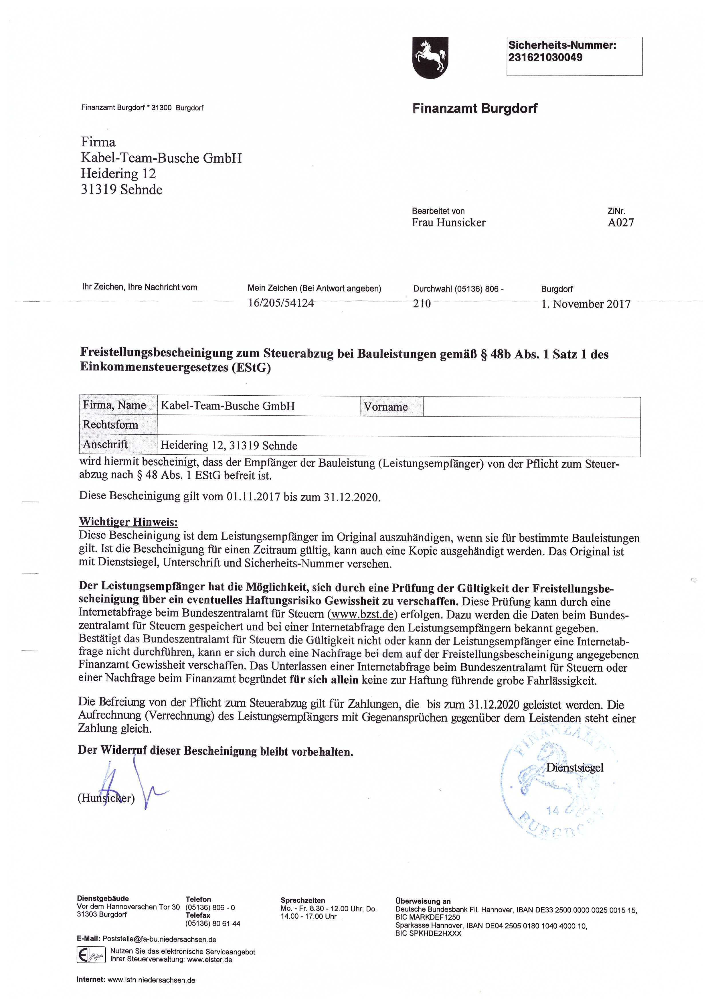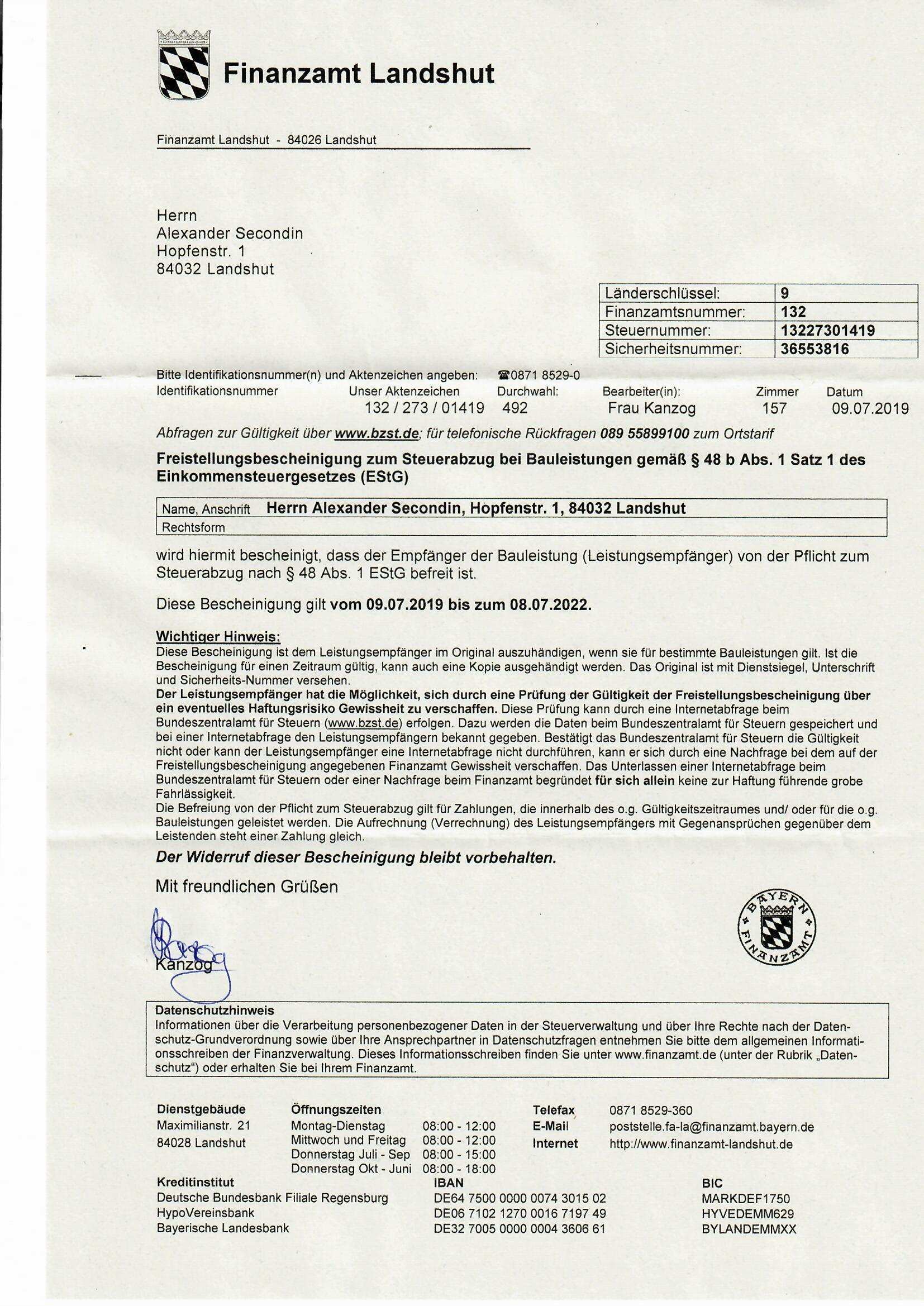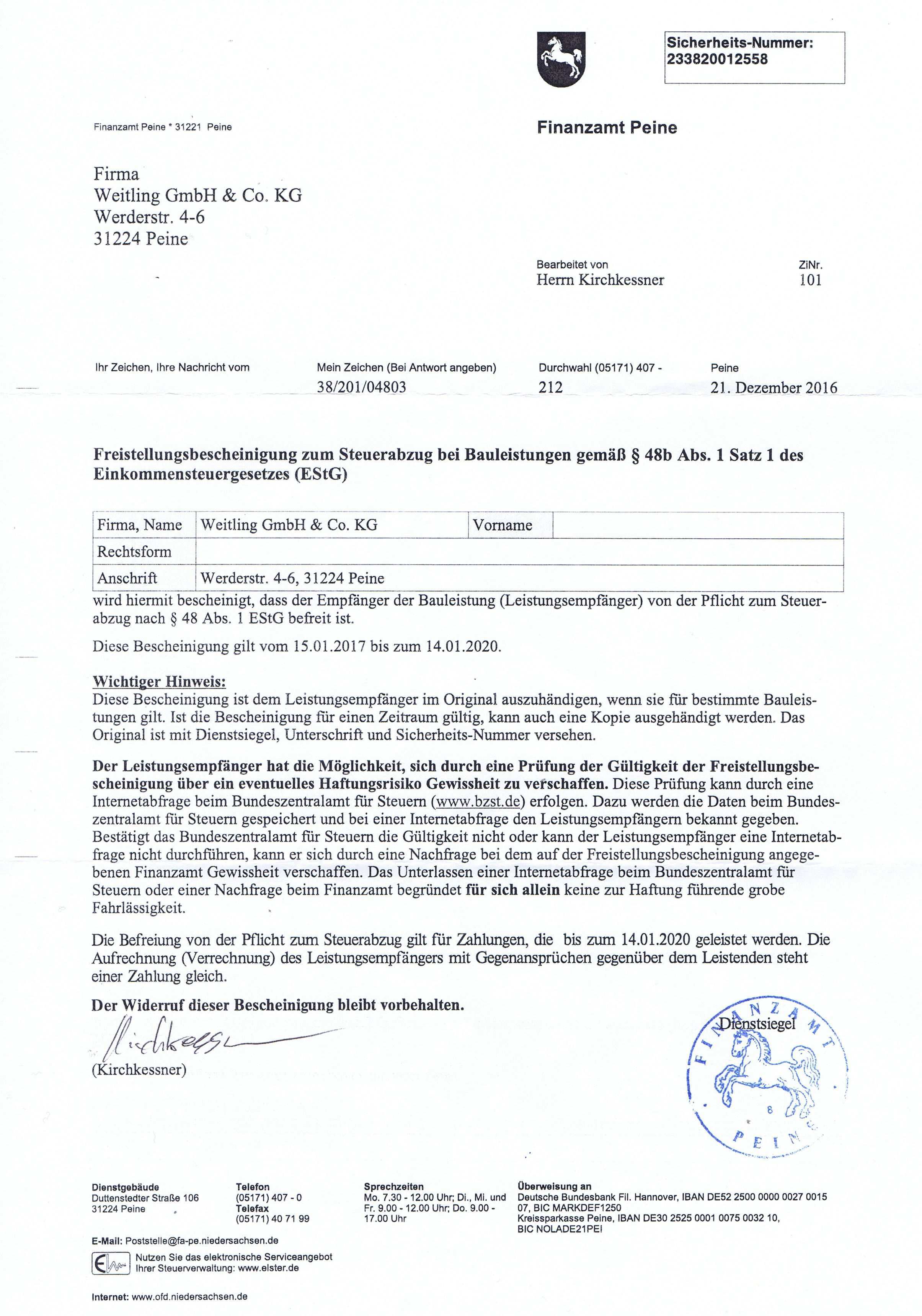 Sie stellen ihnen ein ersatzzertifikat mit demselben inhalt und derselben. 5 wenn eine freistellungsbescheinigung vorliegt gilt 48 absatz 4 entsprechend. Durch den einhergehenden wegfall von mitwirkungs und auskunftspflichten bedeutet sie sowohl für auftraggeber wie auch für auftragnehmer eine erhebliche verfahrenserleichterung im geschäftsverkehr. Name und anschrift der firma und des unternehmens.