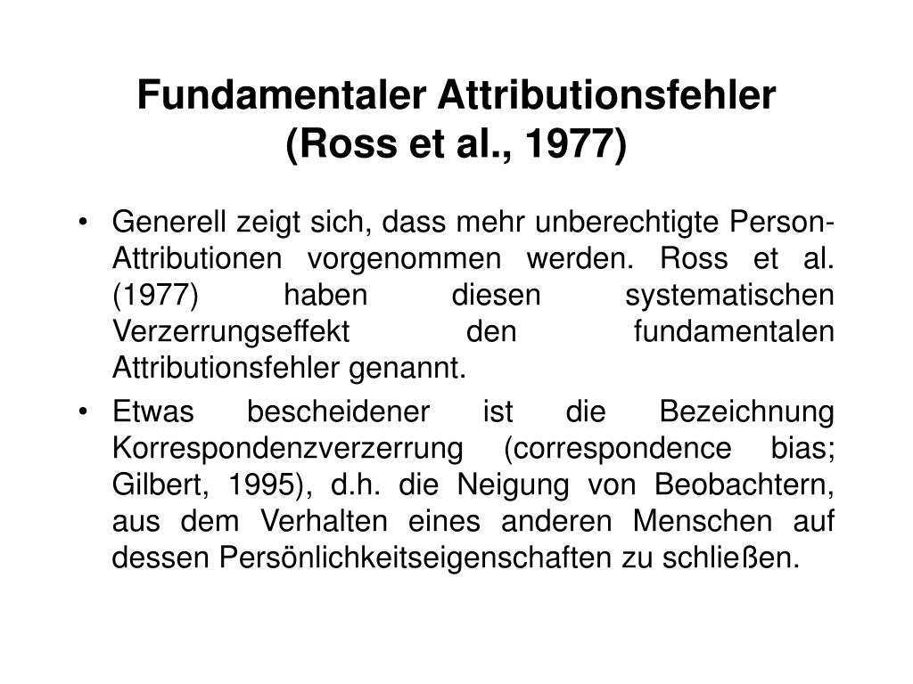 Jones und harris 1967 haben im rahmen einer. Fundamentaler attributionsfehler neigung in der attribution die person persönlichkeits und dispositionelle faktoren als ursache ihrer handlung zu identifizieren und den einfluß von spezifischen begleiterscheinungen und situativen bedingungen umwelteinflüsse zu vernachlässigen. Dass die person die über dich gestolpert ist leichtsinnig ist nicht weiß wohin er geht weiß nicht wie man sich in der öffentlichkeit verhält. Ein weiteres typisches beispiel für den im deutschen als fundamentaler attributionsfehler bekannten effekt ist streit in der partnerschaft.
