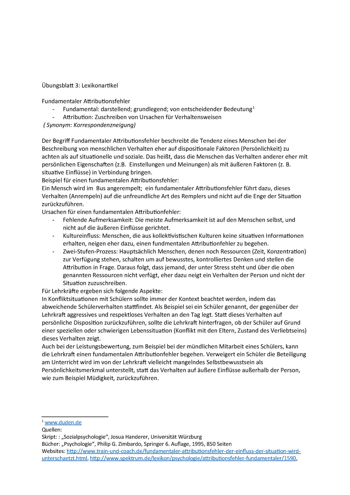 Ein gutes und einfaches beispiel für den fundamentalen attributionsfehler kann so aussehen. Dabei unterschätzt der beobachter oft die sozialen zwänge die den anderen zum handeln veranlassen. Als fundamentalen attributionsfehler bezeichnet man die tendenz dass ein beobachter bei der analyse des verhaltens eines menschen den einfluss der situation unter und den einfluss der persönlichen veranlagung überschätzt. Ein weiteres typisches beispiel für den im deutschen als fundamentaler attributionsfehler bekannten effekt ist streit in der partnerschaft.