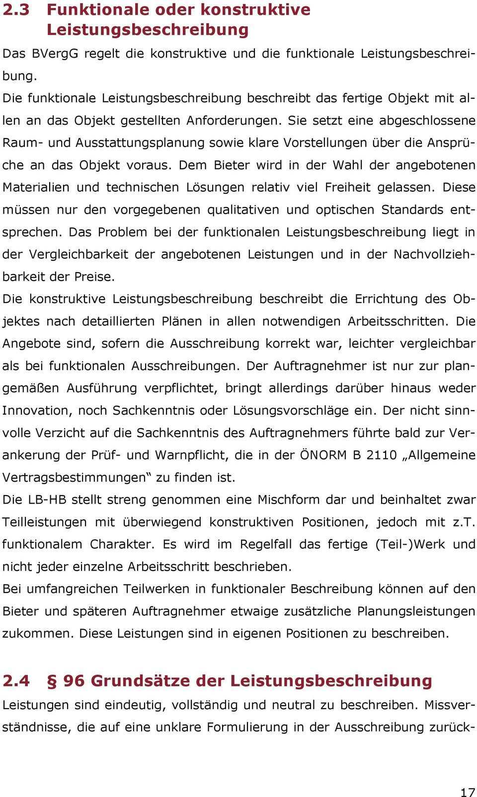 Das ergebnis ist eine funktionale leistungsbeschreibung in form eines text dokuments das den normen für ausschreibungen entspricht. Bei einer funktionalen leistungsbeschreibung wird die leistung nicht in form von leistungs oder funktionsanforderungen oder technischen spezifikationen beschrieben sondern in form einer beschreibung der zu lösenden aufgabe 31 abs. In form einer leistungsbeschreibung mit leistungsprogramm 7c vob a. Frank und pluschke gmbh co.