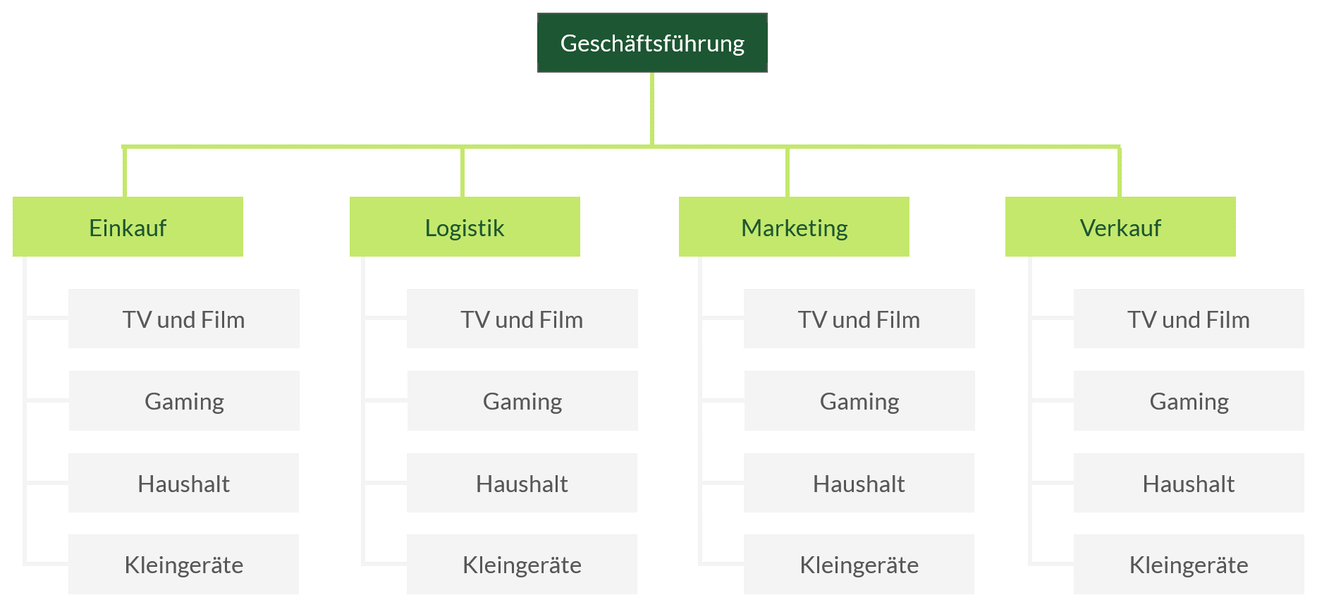 Funktionale organisation beispiel unternehmen. Ein weiteres praxisbeispiel ist die deutsche lufthansa ag. Der grundidee folgend dass die geschäftsprozesse unmittelbar aus der strategie abgleitet werden muss die aufbauorganisation auf die geschäftsprozesse ausgerichtet und gestaltet werden sodass eine hohe effektivität und effizienz der geschäftsprozesse erreicht wird. Mehrliniensystem sind die abteilungen auf der zweithöchsten hierarchieebene nicht nach geschäftsbereichen sondern nach speziellen verrichtungen funktionen gegliedert so liegt funktionale organisation vor organisation. Bei dieser verrichtungsorganisation werden die aufgaben unterhalb der führungsebene nach ihrer funktion gegliedert z b.