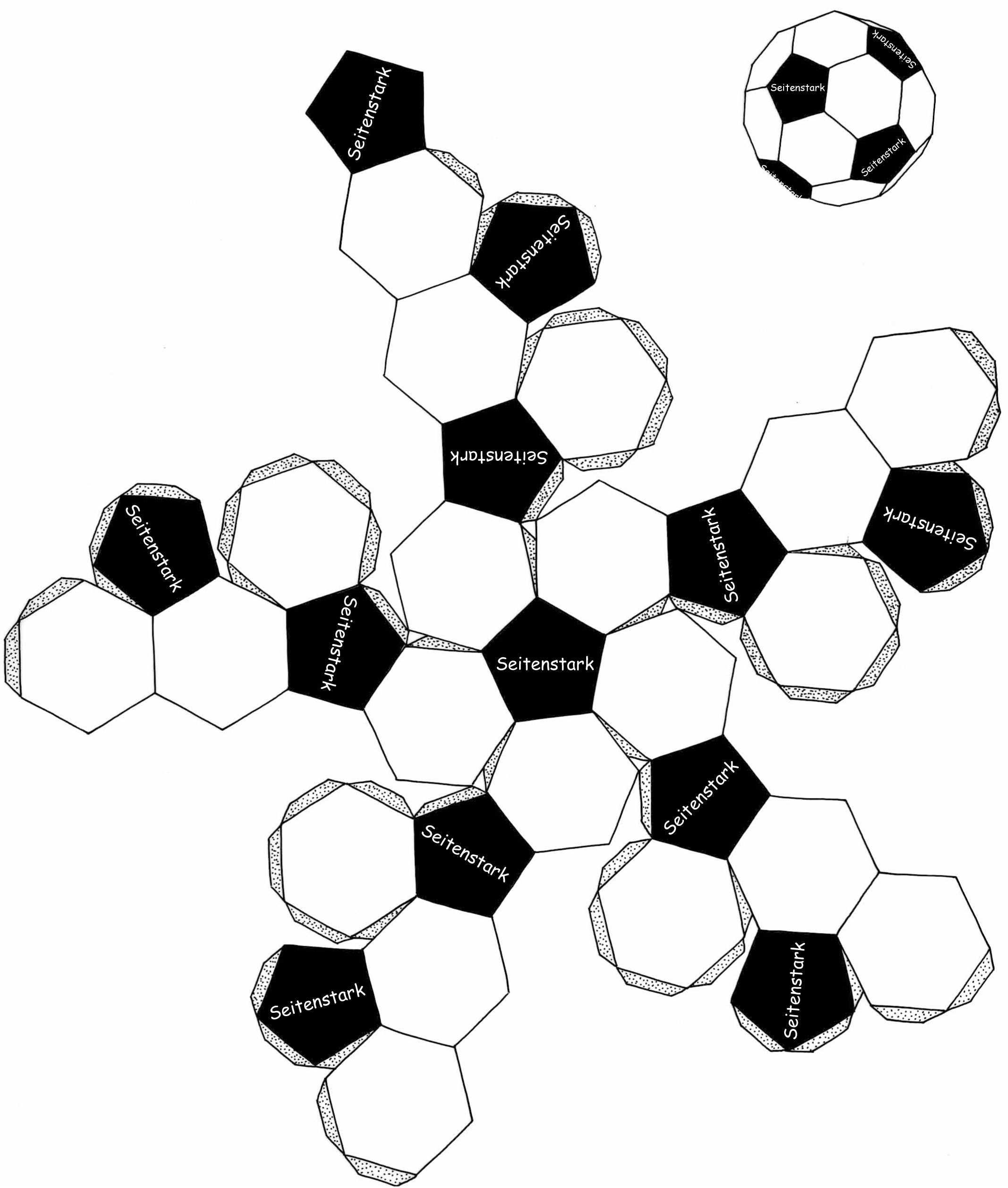 Fussball basteln vorlage. Wenn viele kleine bälle gewollt sind sollte man aber überlegen ob man sie sich nicht einfach fertig ausdruckt und zur verstärkung auf tonpapier klebt. Du kannst ihn natürlich auch verwenden um damit zu spielen musst dabei allerdings sehr vorsichtig sein. In den meisten fällen steht es ihnen frei vorlagen zu kopieren die auf der freigegebenen cc by sa lizenz basieren. Du kannst den fußball entweder bemalen und ihn dir als dekoration ins regal stellen oder deinen rennmäusen ungeklebt und nur geknickt zum knabbern geben.