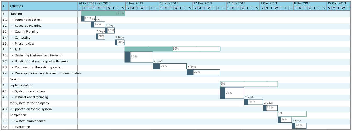 The workflows are shown as processes and events that are related to different executes and tasks that allow business workflow to be completed. It shows different business processes through various work flows. Here is a gantt chart that was created with microsoft project. Parts of a gantt chart.