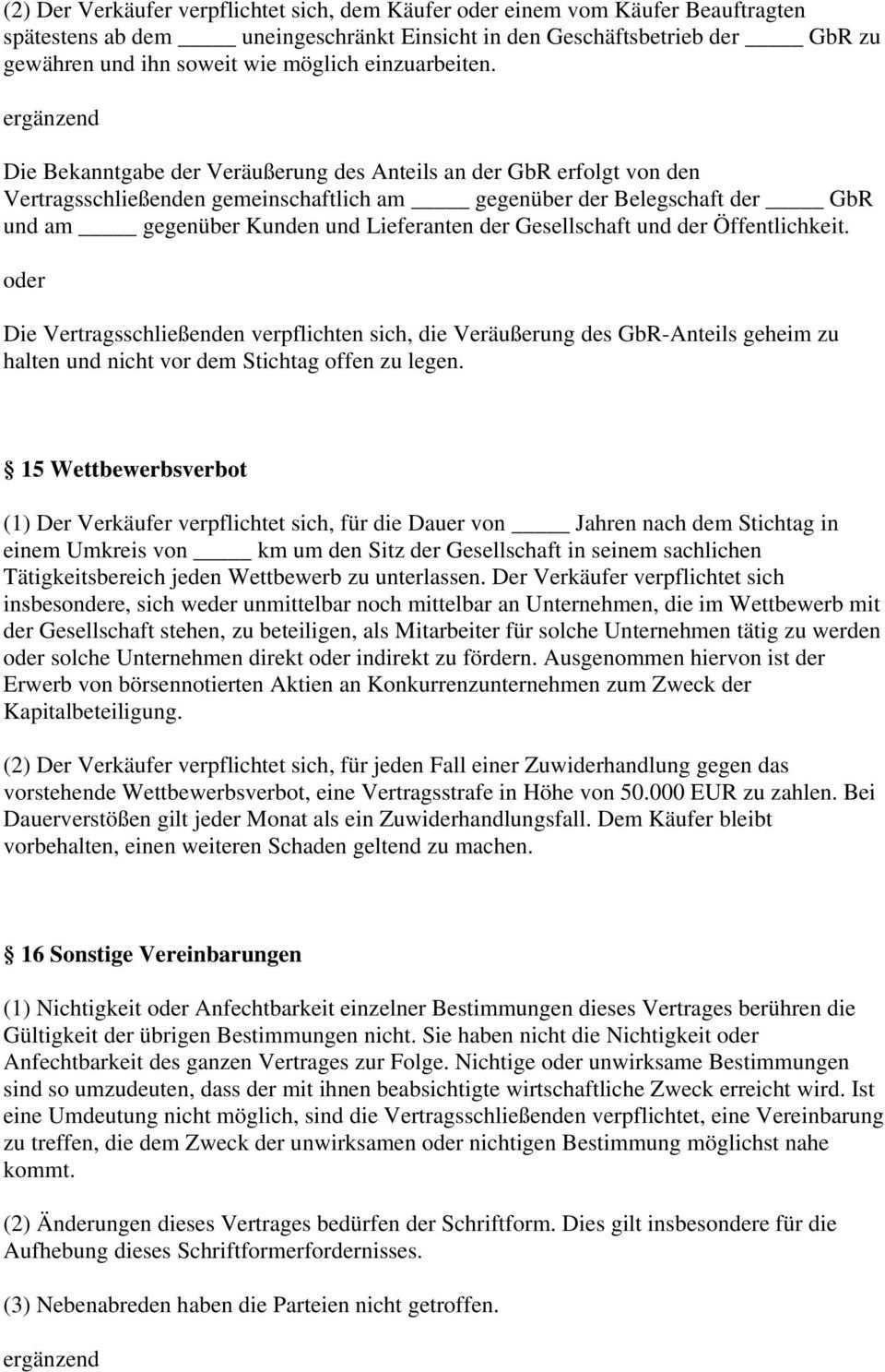 Muster eines gesellschaftsvertrages zur gründung einer gesellschaft bürgerlichen rechts zwischen. Zwischen herrn frau nachfolgend verkäufer genannt und herrn frau nachfolgend käufer genannt 1 vertragsgegenstand 1 der verkäufer ist zu an der gbr beteiligt. 5 bei einer aufschiebend bedingten anteilsübertragung ist es aufgabe des geschäftsführers eine neue gesellschafterliste nach eintritt der bedingungen einzureichen. Dies sollte ausdrücklich geschehen um unklarheiten zu vermeiden und wegen der gewählten wortwahl zu verdeutlichen wann der erwerber auch steuerlich in die bag eintritt.