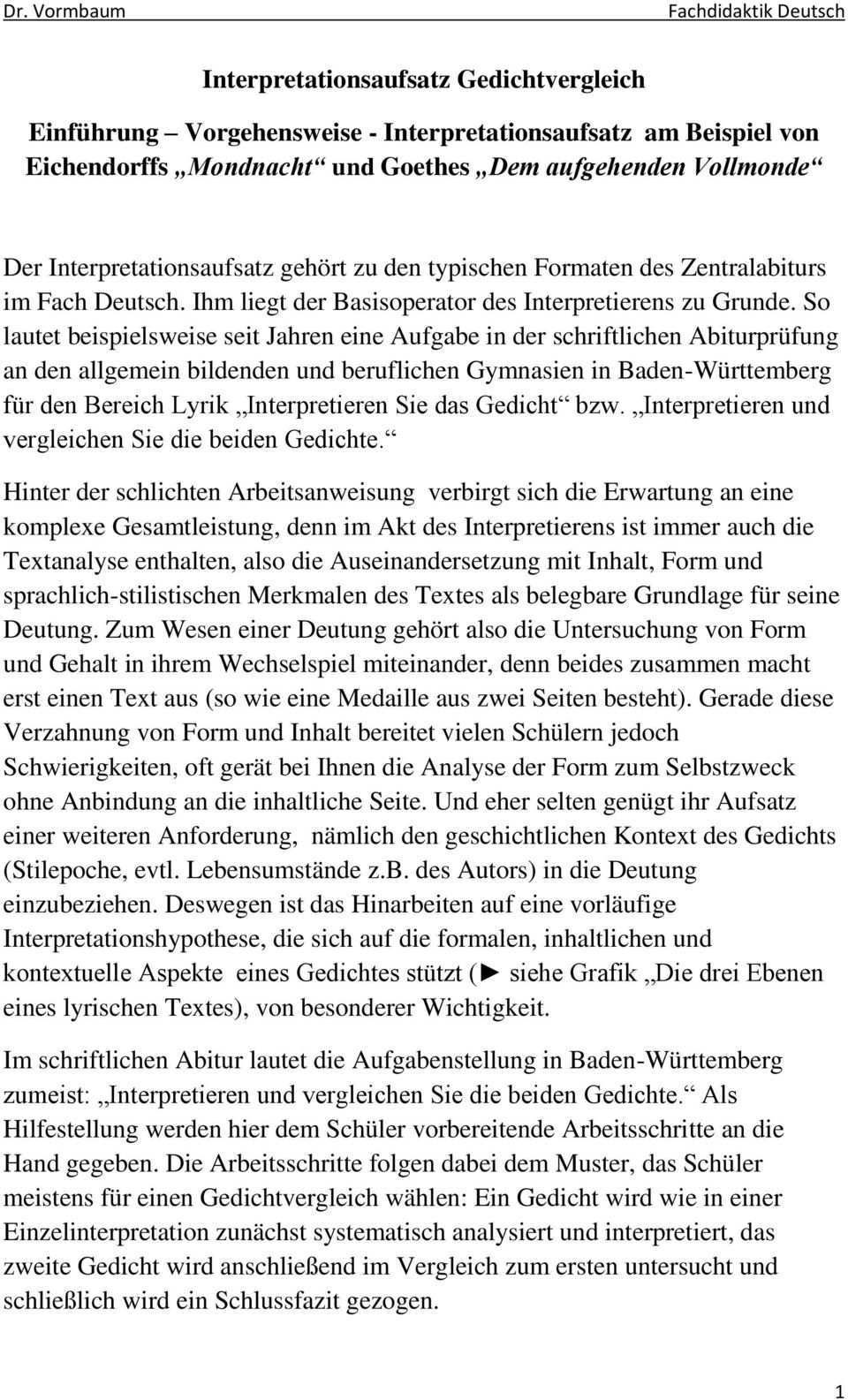 Das gedicht abschied von joseph von eichendorff aus dem jahr 1810 thematisiert die reise als eine flucht aus dem alltäglichen hektischen leben in die natur welche mit einer neuen denkweise und einer veränderten lebenseinstellung in verbindung steht. Bei einem gedichtvergleich geht es darum zwei oder mehrere lyrische texte gedichte miteinander zu vergleichen dadurch erhält die einfache gedichtanalyse eine zusätzliche ebene und kann weitere impulse für die auseinandersetzung geben. Gedichtvergleich naturlyrik pdf wie schreibt man einen gedichtvergleich. Fragen der abgrenzung gedichte texte aus.