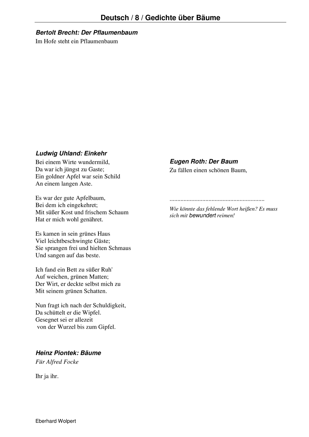 Download pdf 184 kb. In variante 3 werden beide gedichte gleichzeitig untersucht.