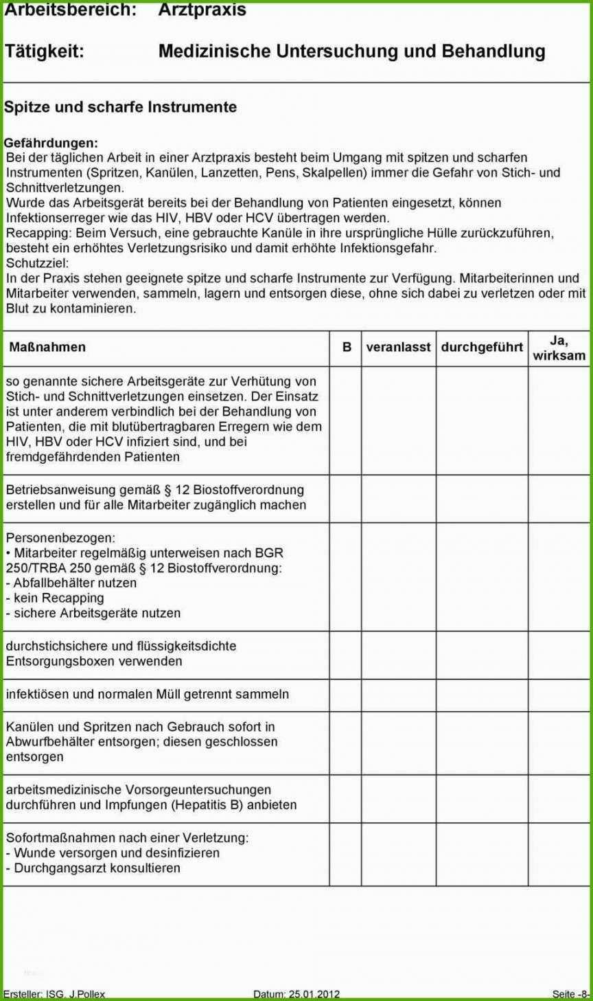 Gefaehrdungsbeurteilung arztpraxis muster. Beschäftigte haben anspruch auf einen gesunden und sicheren arbeitsplatz. Gefährdungsbeurteilung in der arztpraxis unternehmer innen humanmedizin für ein gesundes berufsleben. Oder den druckbereich stehen muster gefahrstoffverzeichnisse zur verfügung die mit wenigen ergänzungen übernommen werden können vgl. Diese muster gefährdungsbeurteilung können sie für ihre arztpraxis einsetzen.