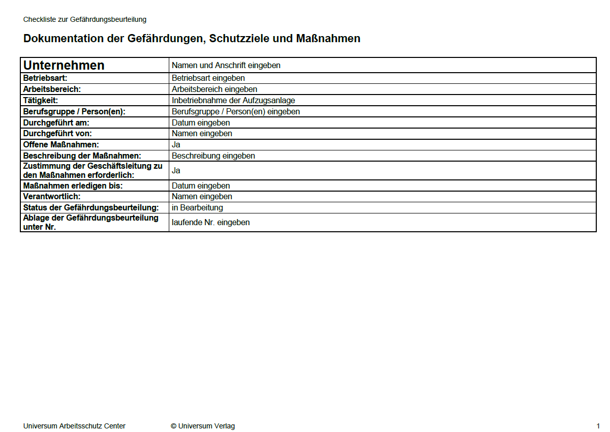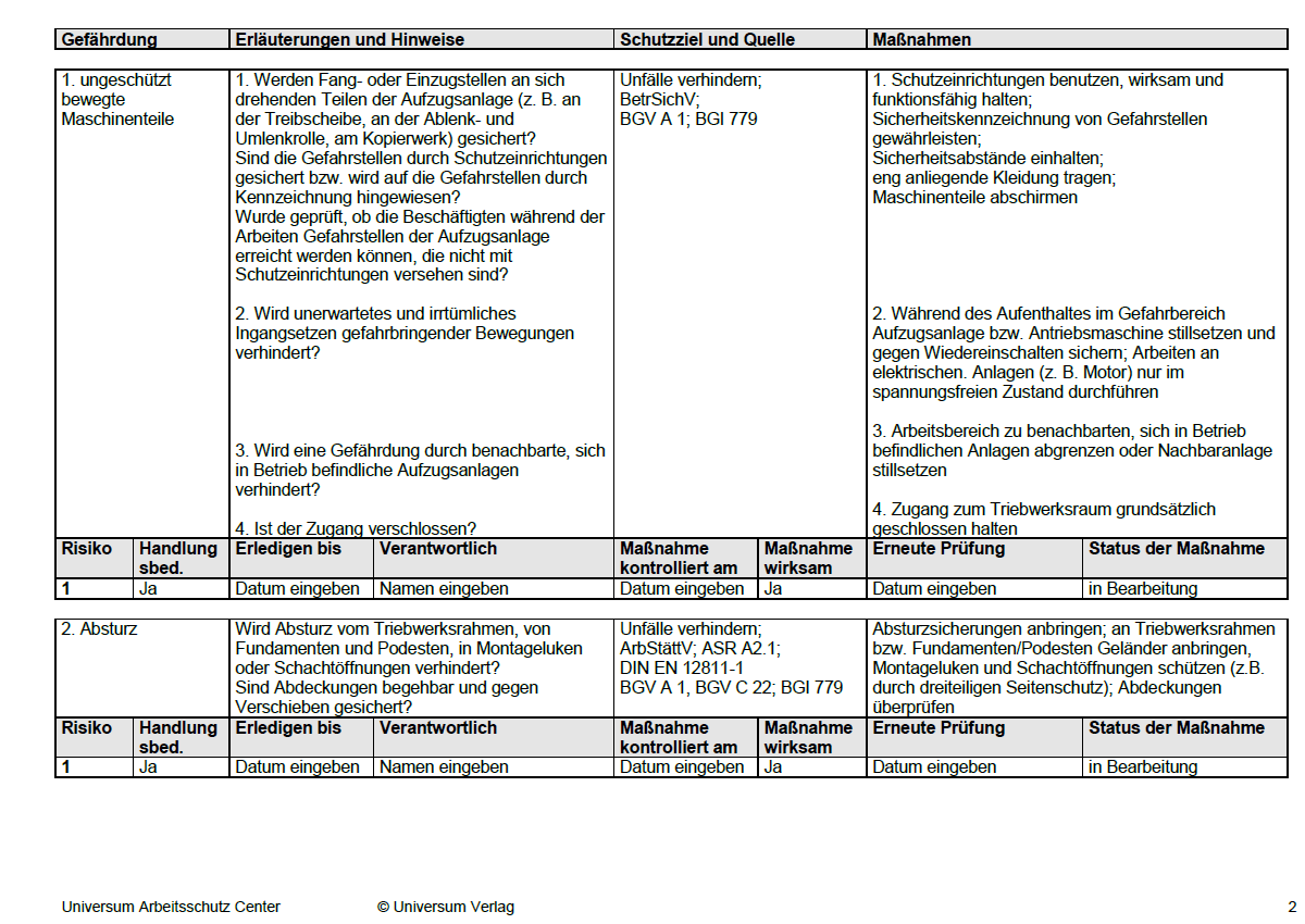 Gefaehrdungsbeurteilung Aufzugsanlagen Vorlage
